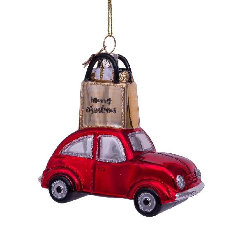 Bli den første til å omtale «Julepynt – Glass red car w/gold shopping bag»