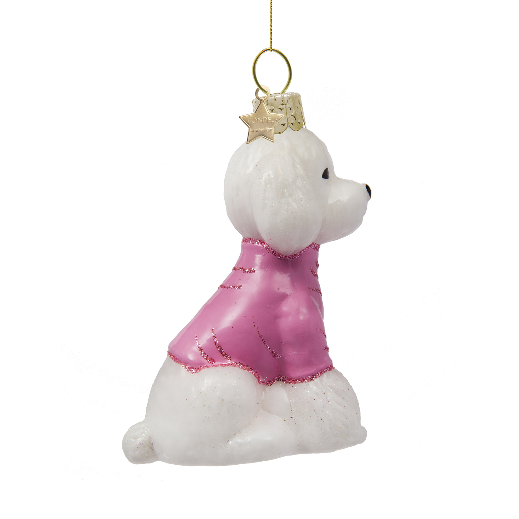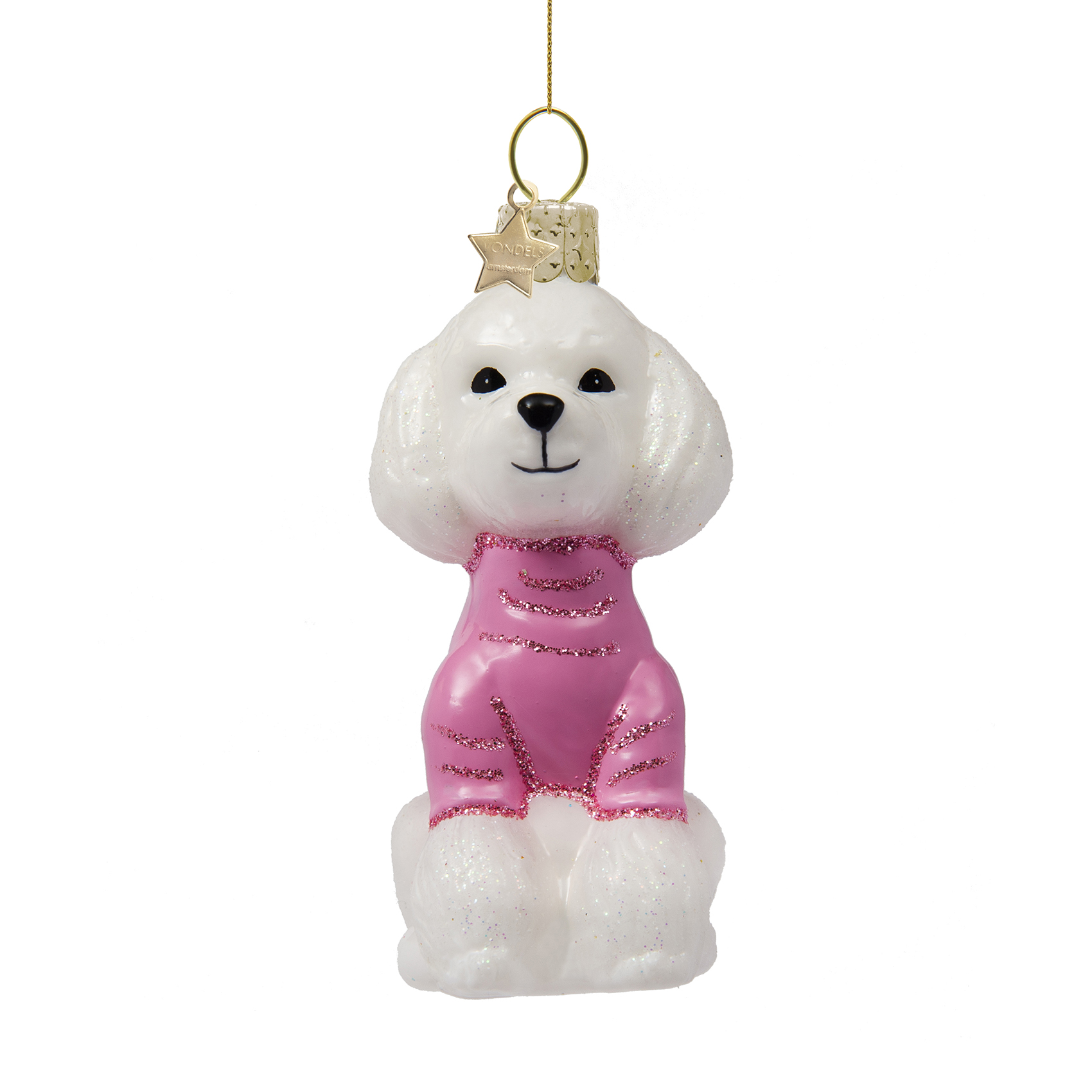 Julepynt – Glass white poodle w/pink t-shirt