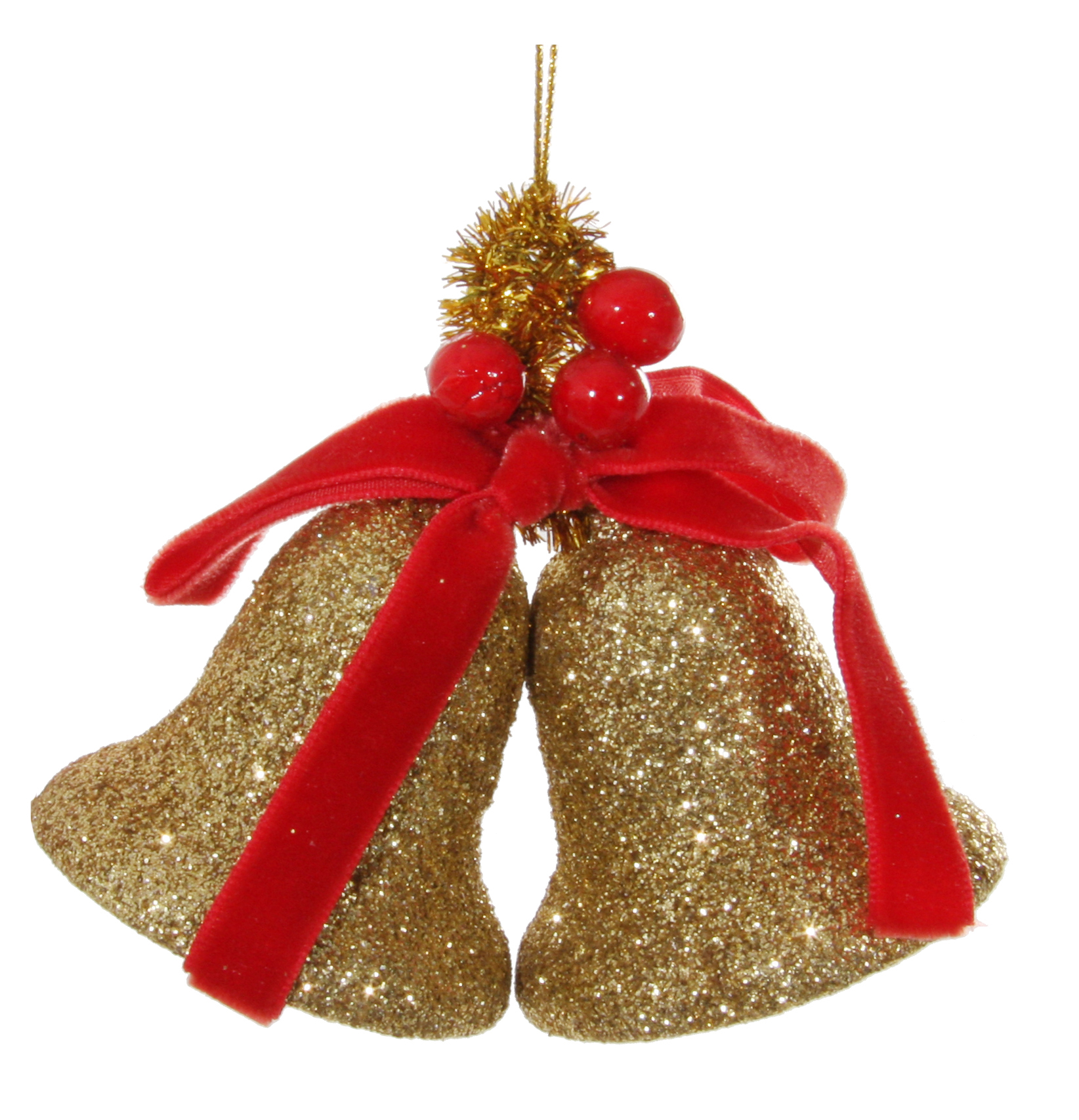 Julepynt – Glitter bells gold w/bells & berries