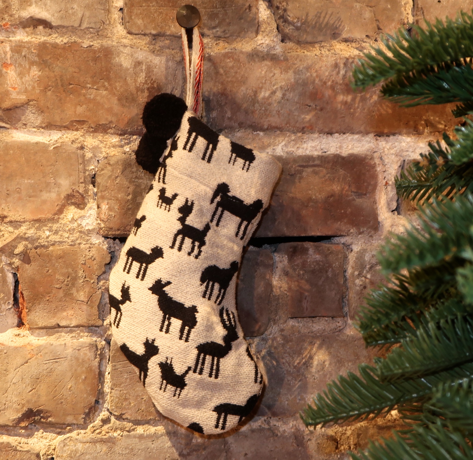Dekorativ julestrømpe med dyre mønster, kommer med en praktisk hempe, slik at du enkelt kan henge den opp.