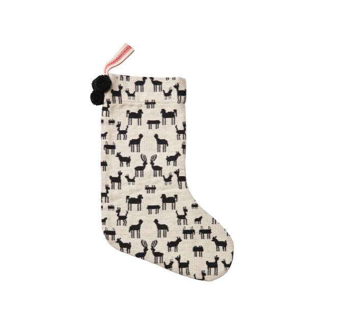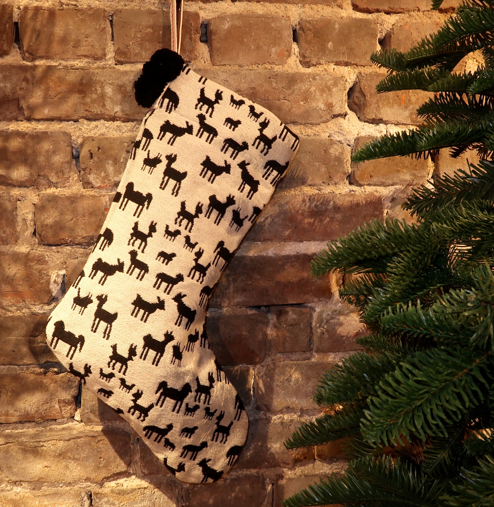 Dekorativ julestrømpe med dyre mønster, kommer med en praktisk hempe, slik at du enkelt kan henge den opp.