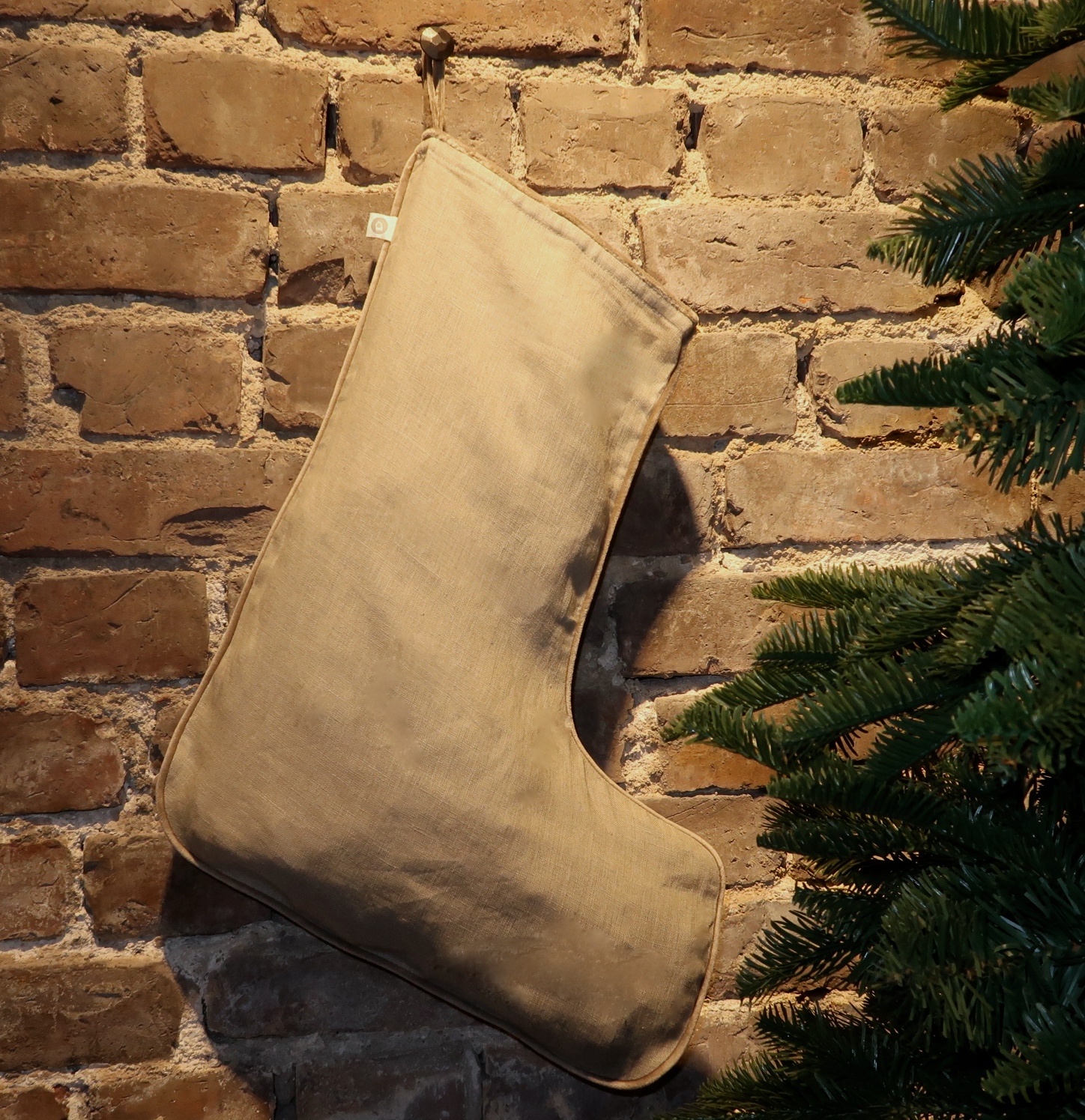 Dekorativ julestrømpe i lin, kommer med en praktisk hempe, slik at du enkelt kan henge den opp. Tips, broder inn navnet på strømpen så har alle i huset hver sin julestrømpe.