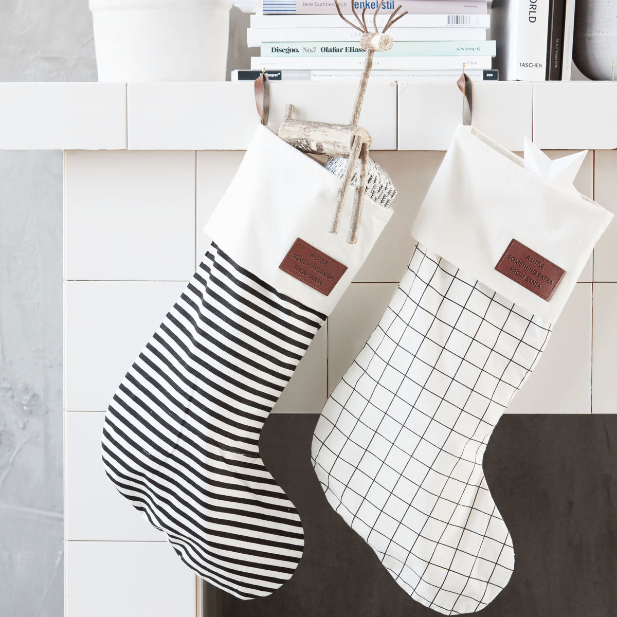 Dekorativ julestrømpe med grafisk mønster fra danske House Doctor. Kommer med en praktisk hempe, slik at du enkelt kan henge den opp.