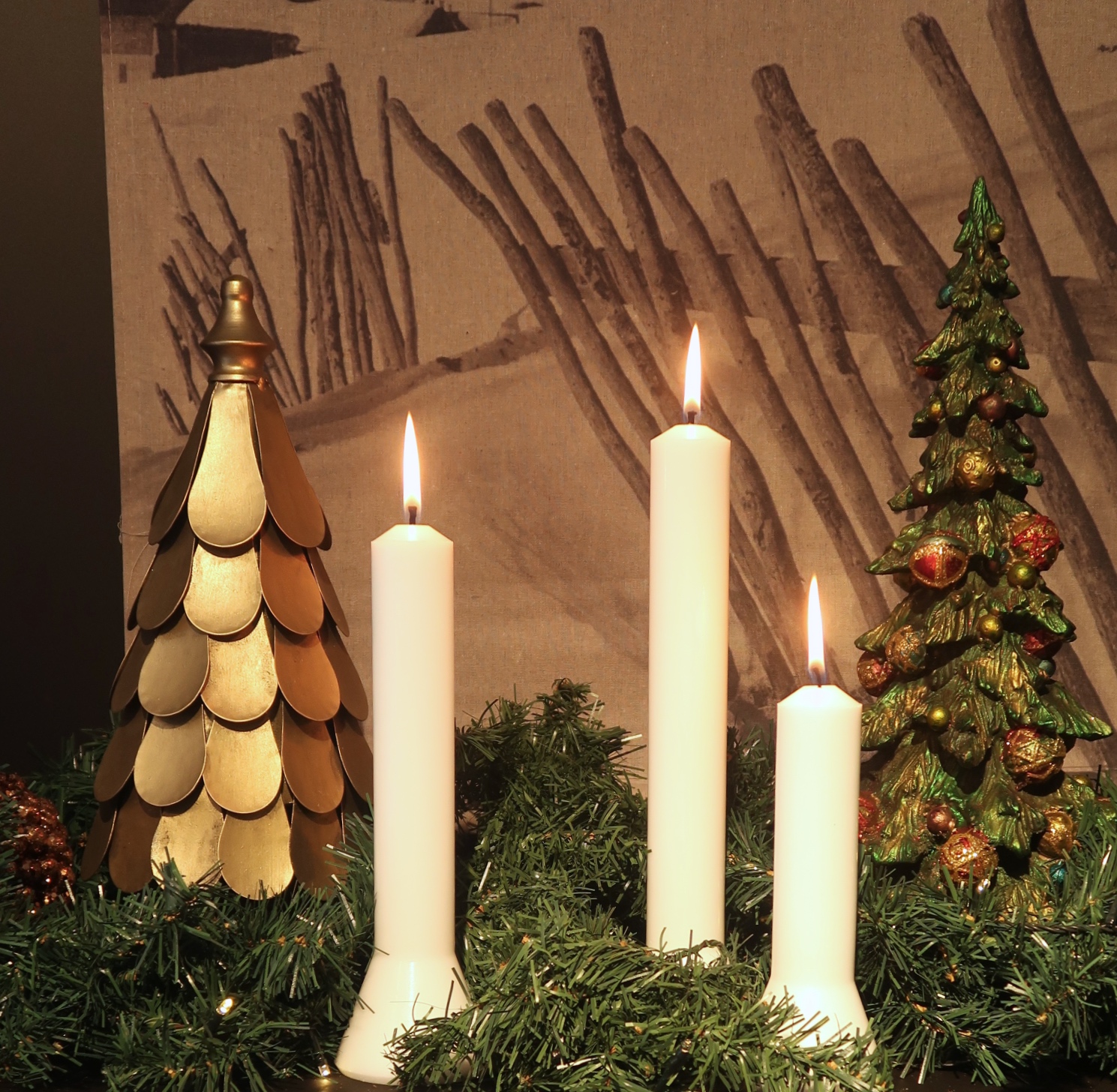 Dekorativ juletre i antikk messing og sort fot. Dekorativt alene eller sammen med flere.