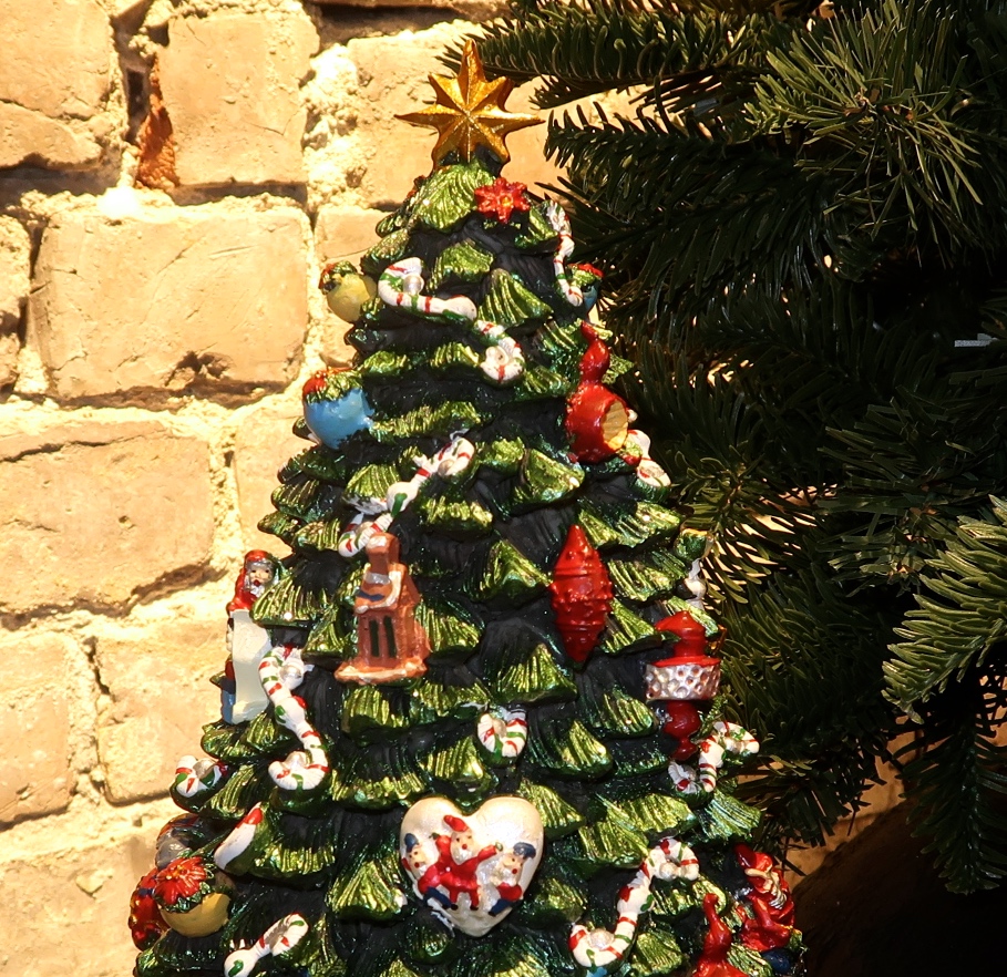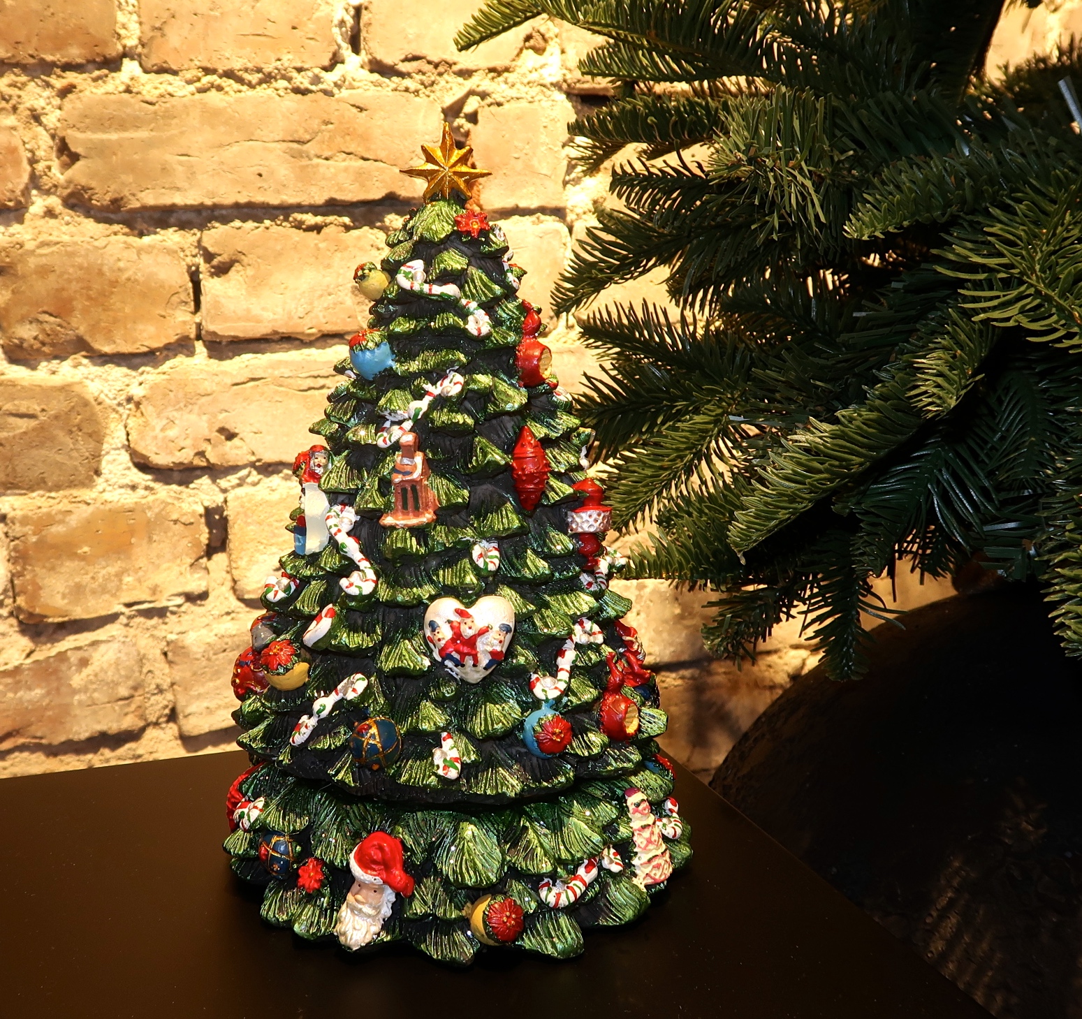 Dekorativ juletre som går rundt og spiller musikk, vris opp for å få den til å spille.