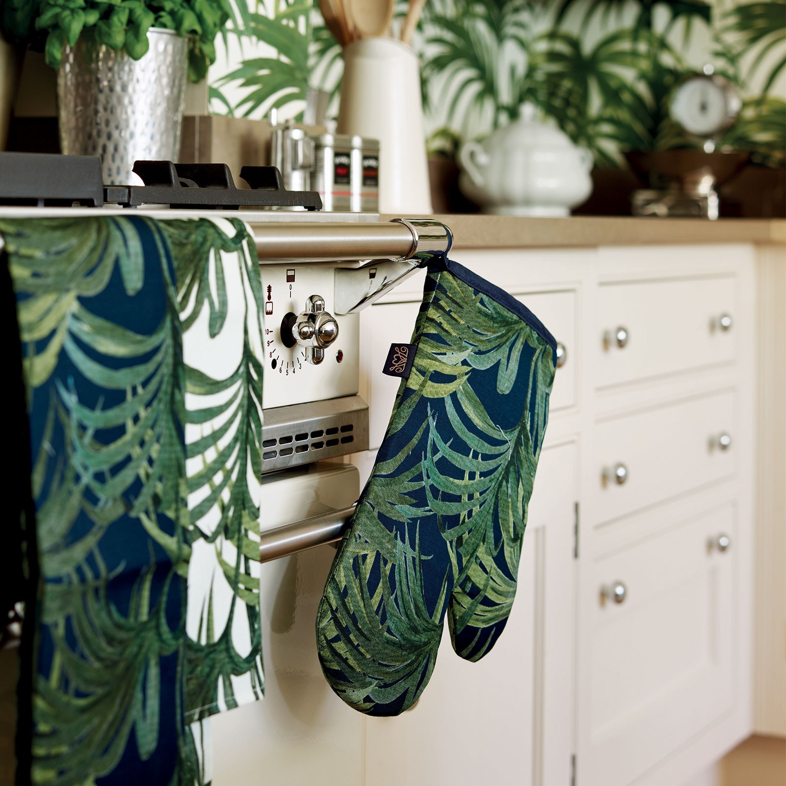 Dekorative kjøkkenhåndkle med palmemotiv fra den engelske merket House of Hackney. Velg mellom 2 forskjellige farger!