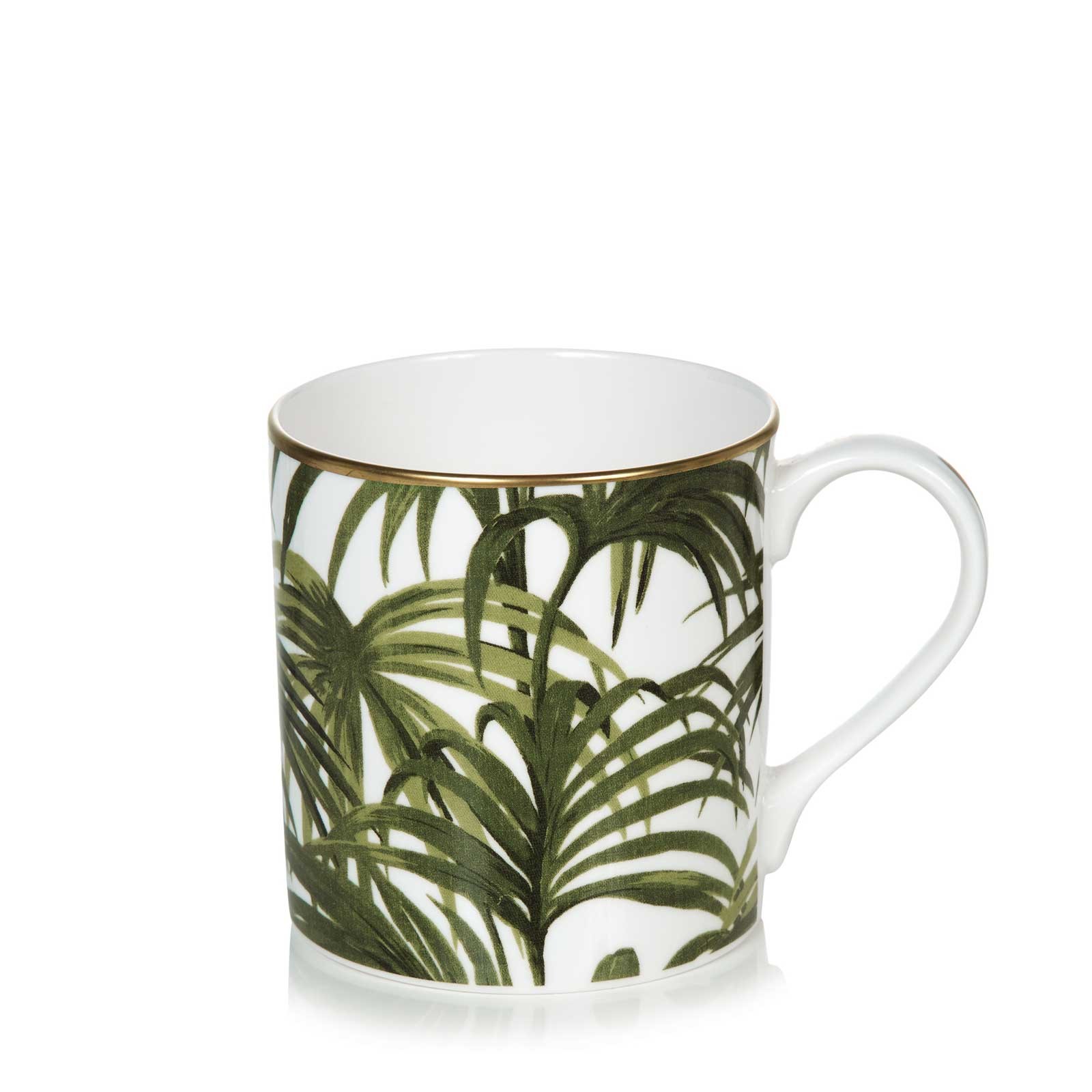 Lekker kopp i dekorativt palmemotiv, med gullkant.