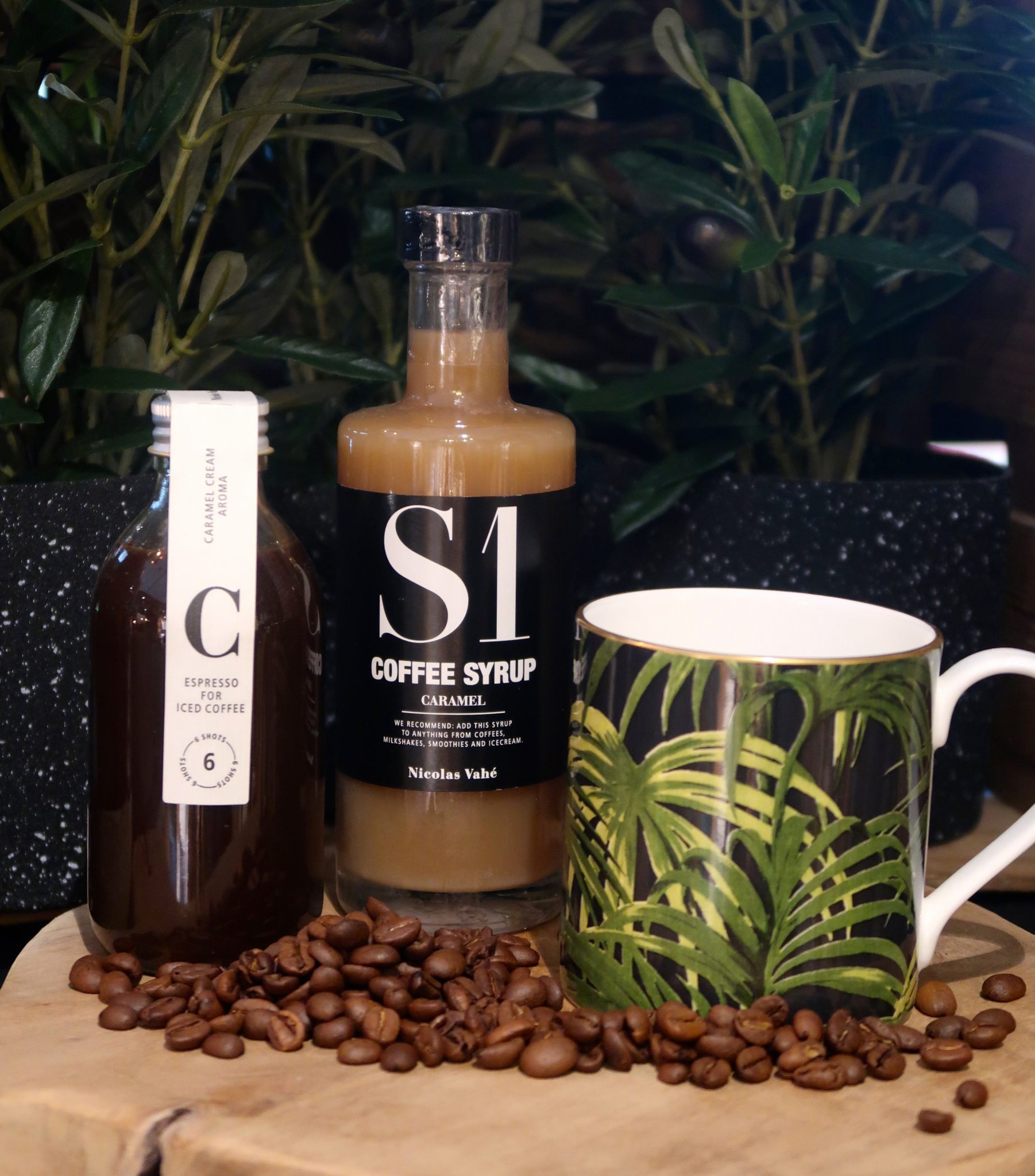 Lekker kopp i dekorativt palmemotiv, med gullkant.