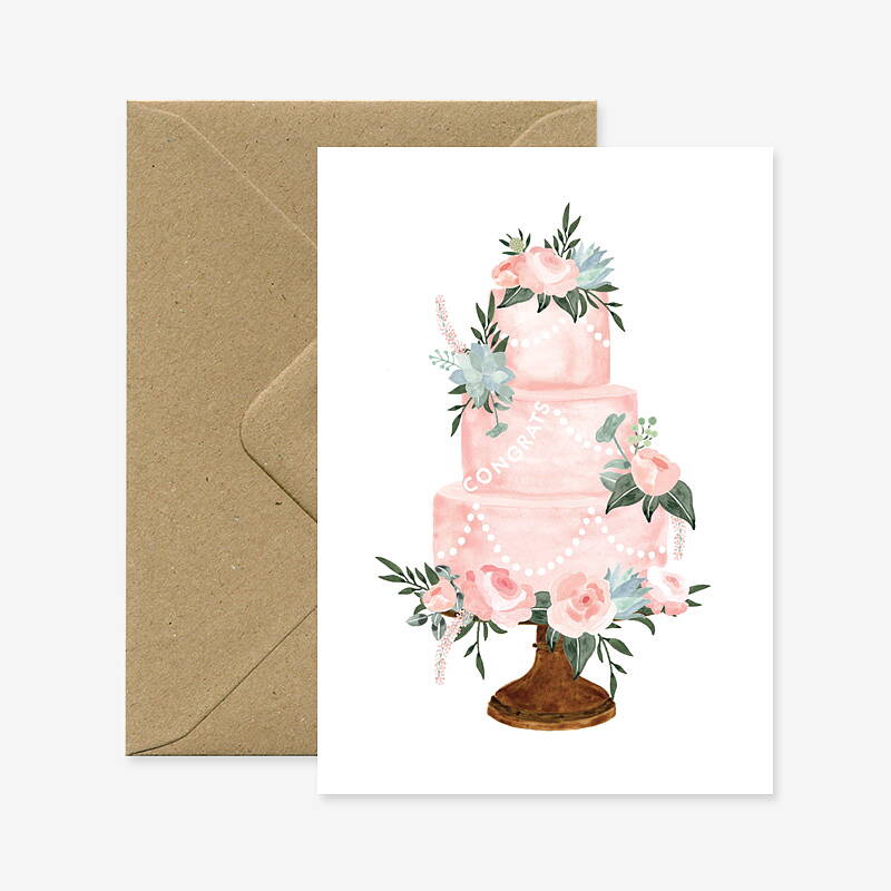 Dobbeltbrettet kort i A6-format med blank innside, naturfarget konvolutt.