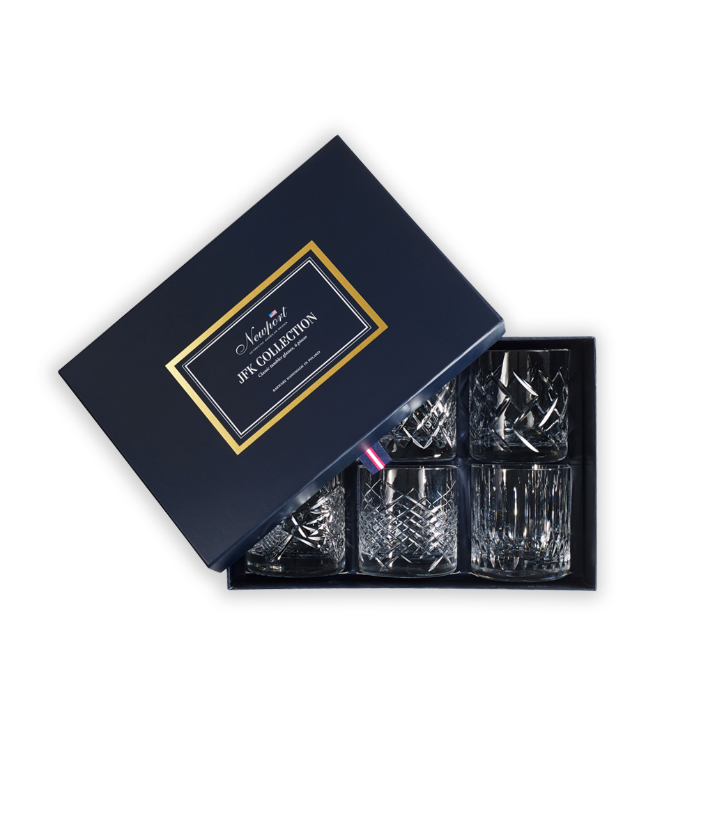 Krystallglassene er munnblåst av dyktige håndverkere i Polen. Glassene kommer i sett a 6 stk, der alle glassene har ulike mønster. Kan brukes til varm og kald drikke. Tåler oppvaskmaskin.