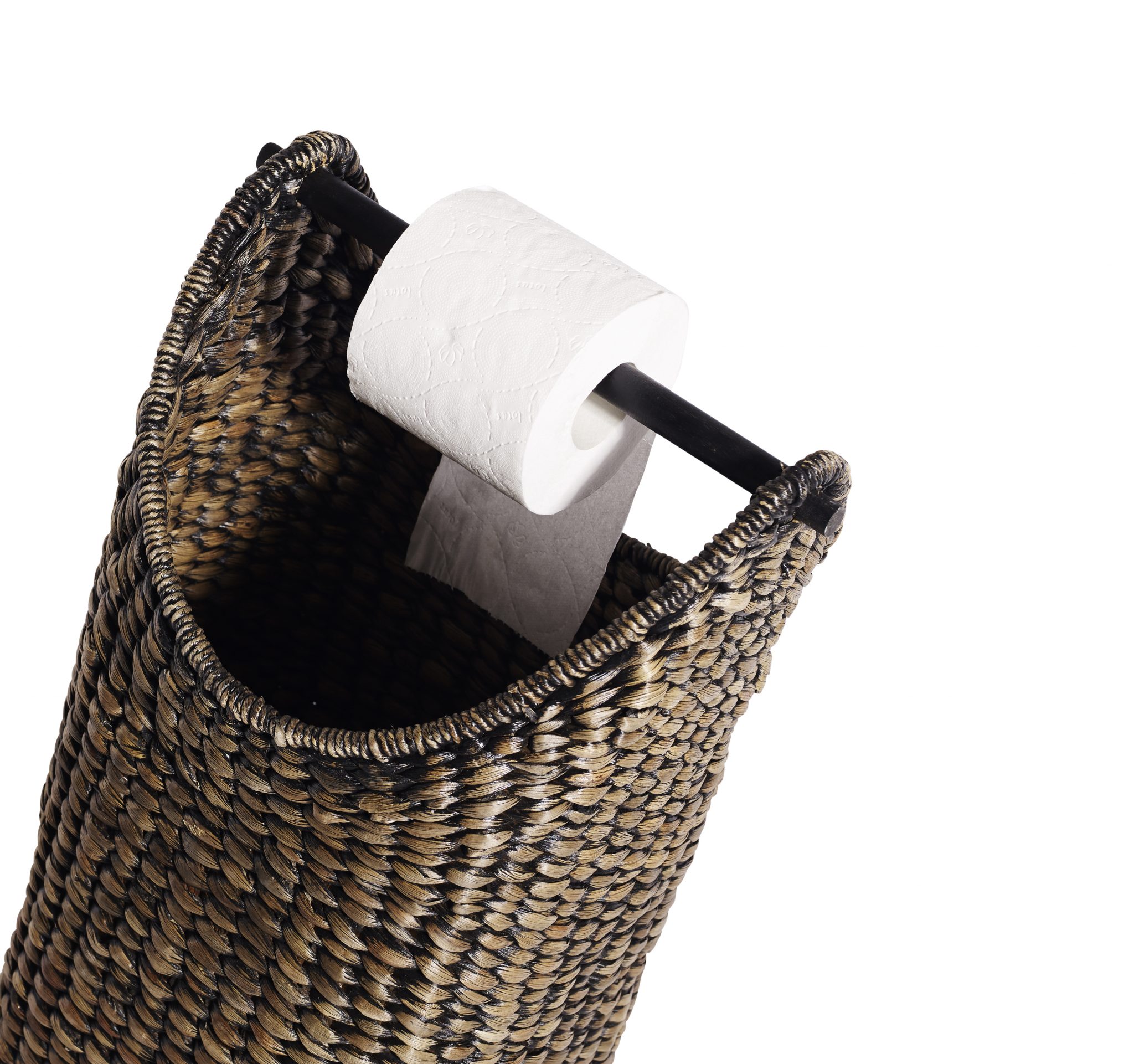 Dekorativ kurv i flettet vannhyasint. Passer perfekt til toalettpapir, du har plass til ca 16 ruller + 1 stk på trepinnen, her sparer du mye skap-plass og du slipper å lage noe hull i veggen!