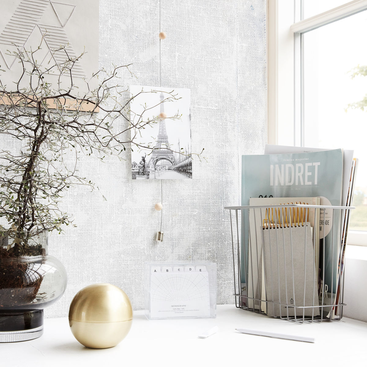 Kurv til oppbevaring, et must på kontoret. Kurven er laget av jern og kommer i en lys grå nyanse, hjelper deg å holde styr på de viktigste tingene på kontoer, perfekt i en hylle!