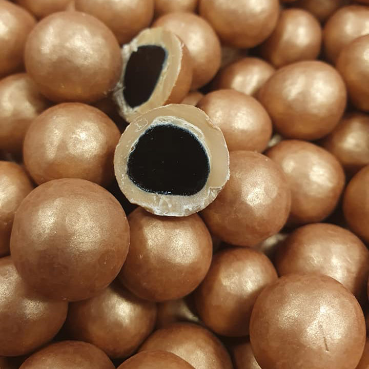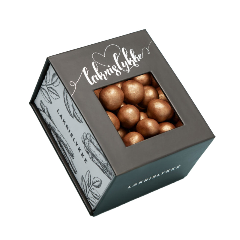 Myk salt lakris med karamellisert melkesjokolade og lakrispulver.