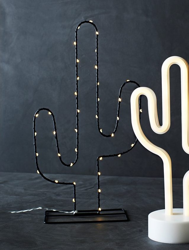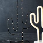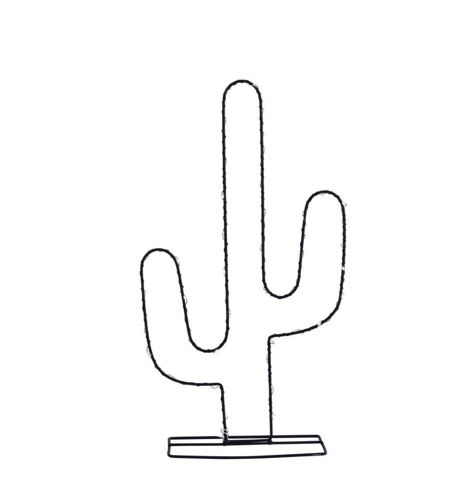 Dekorativ lampe i sort stål, formet som en kaktus med led lys. Kan plasseres over alt da den går på 3 AA batterier.
