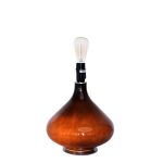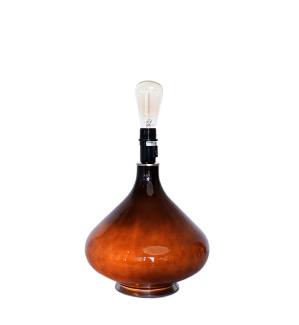 Håndlaget lampefot i glass fra spanske Thawaru med lys i foten. Alle er håndlaget og de kan derfor variere litt i fargen når lyset i foten er tent, fra lysere- til mørkebrun. Når lyset i foten ikke er på ser lampefoten sort ut. Lampefoten lyser når skjermen tennes, man kan velge å skru av skjermen slik at kun foten lyser.