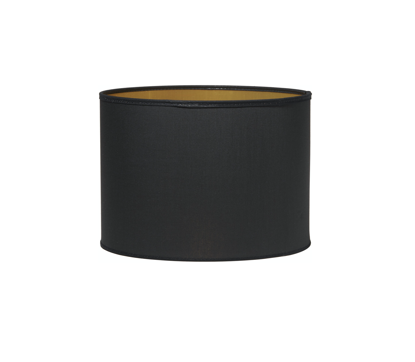 En sylinderformet lampeskjerm med et minimalistisk uttrykk. Sort matt utsiden, mens innsiden er i metall, gull.