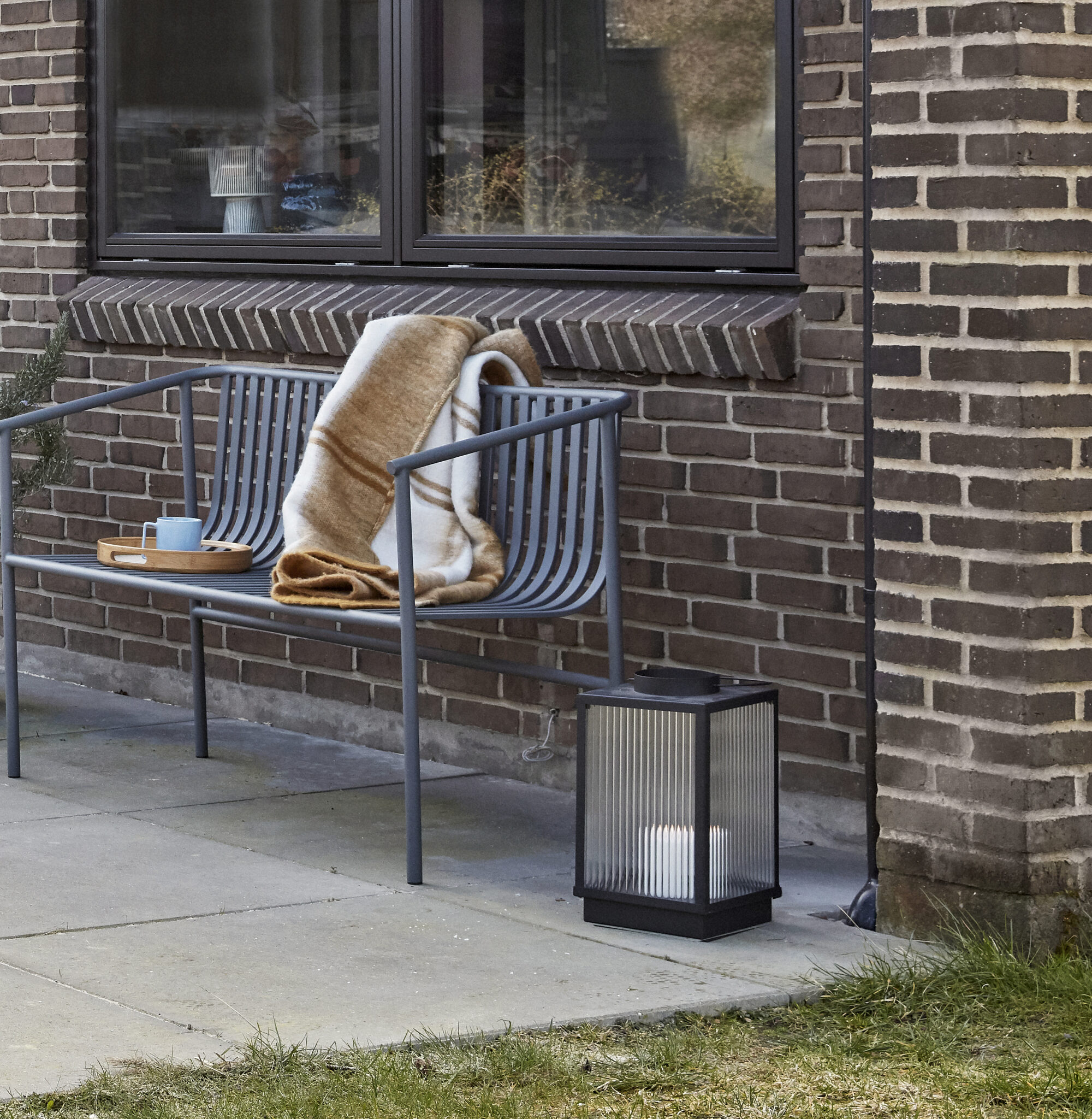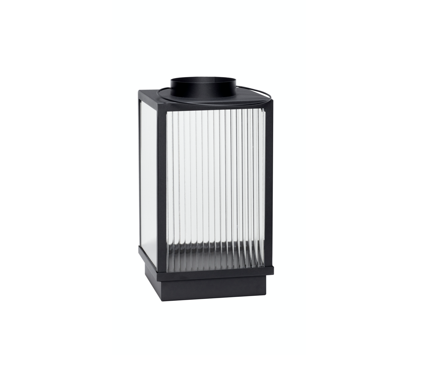Dekorativt og elegant lykt i matt sort, kommer med rillet glass som skapet et eksklusivt uttrykk.