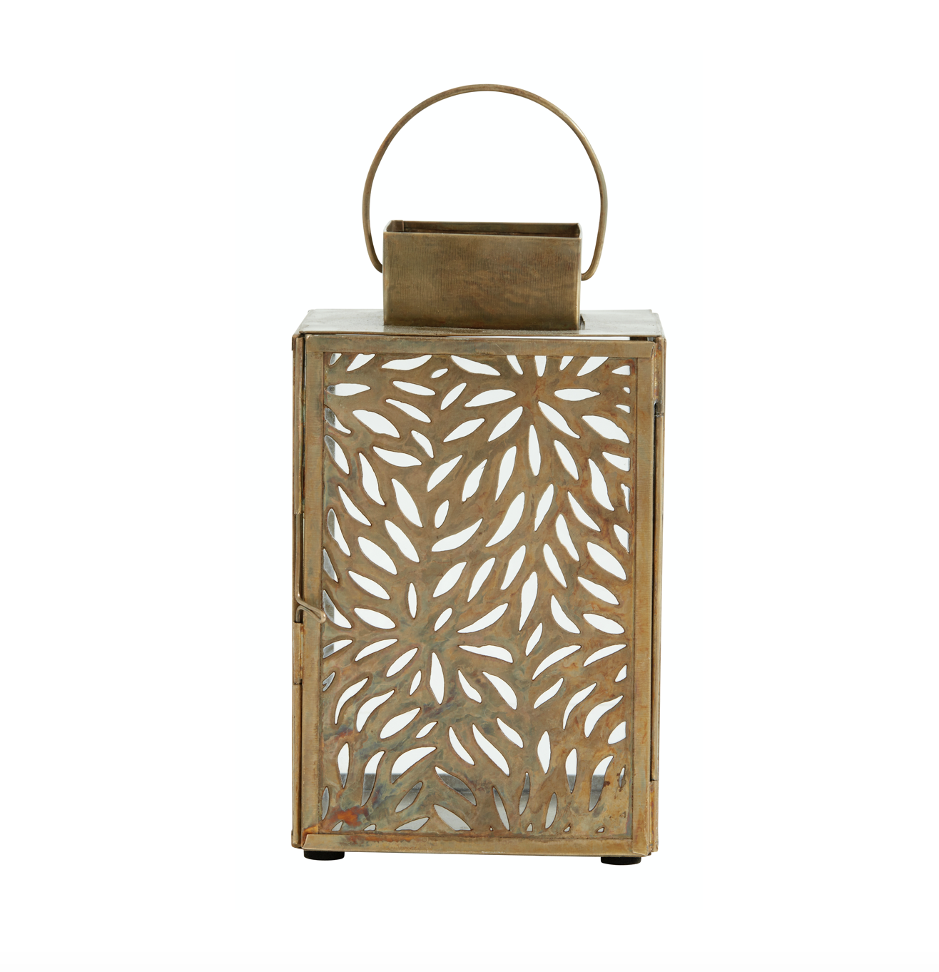 Håndlaget lykt med et antikt utseende. Laget av gullbelagt jern.