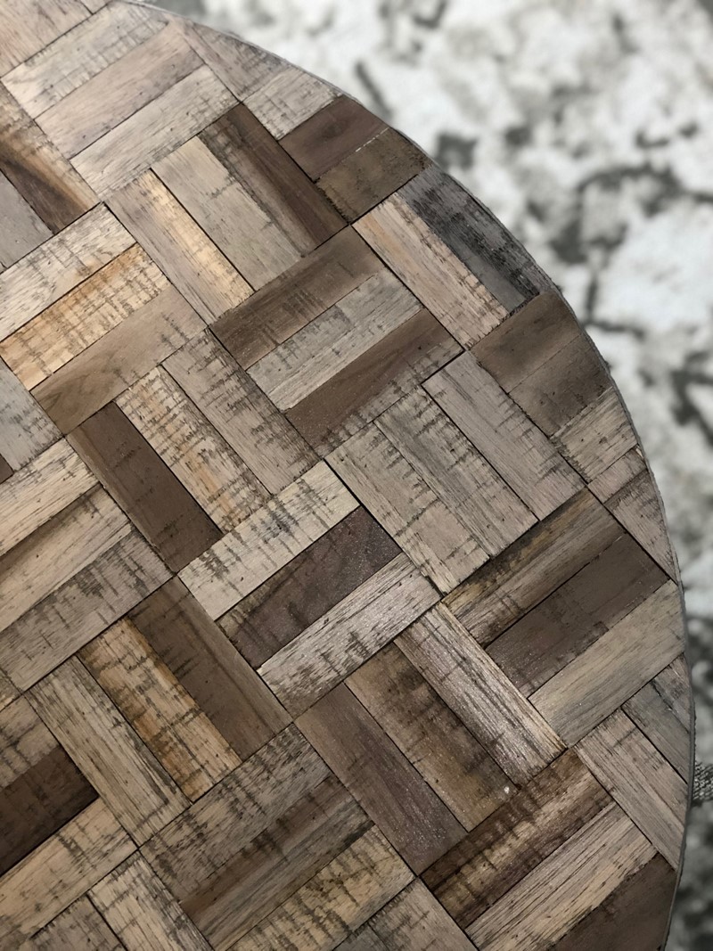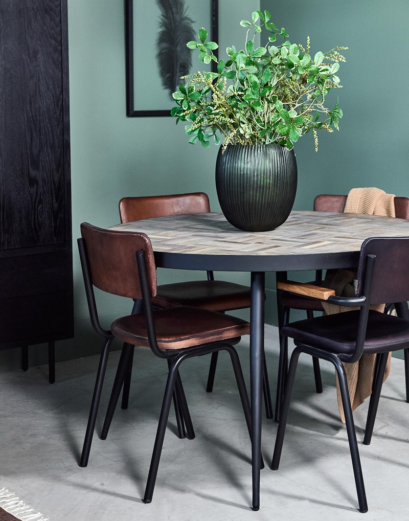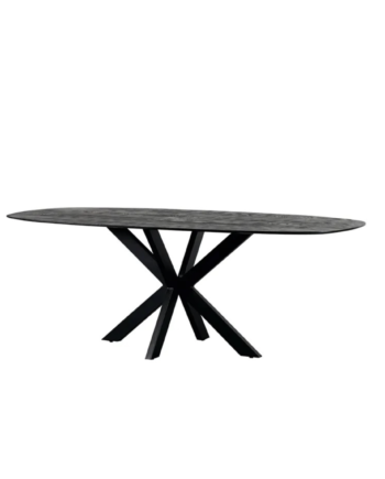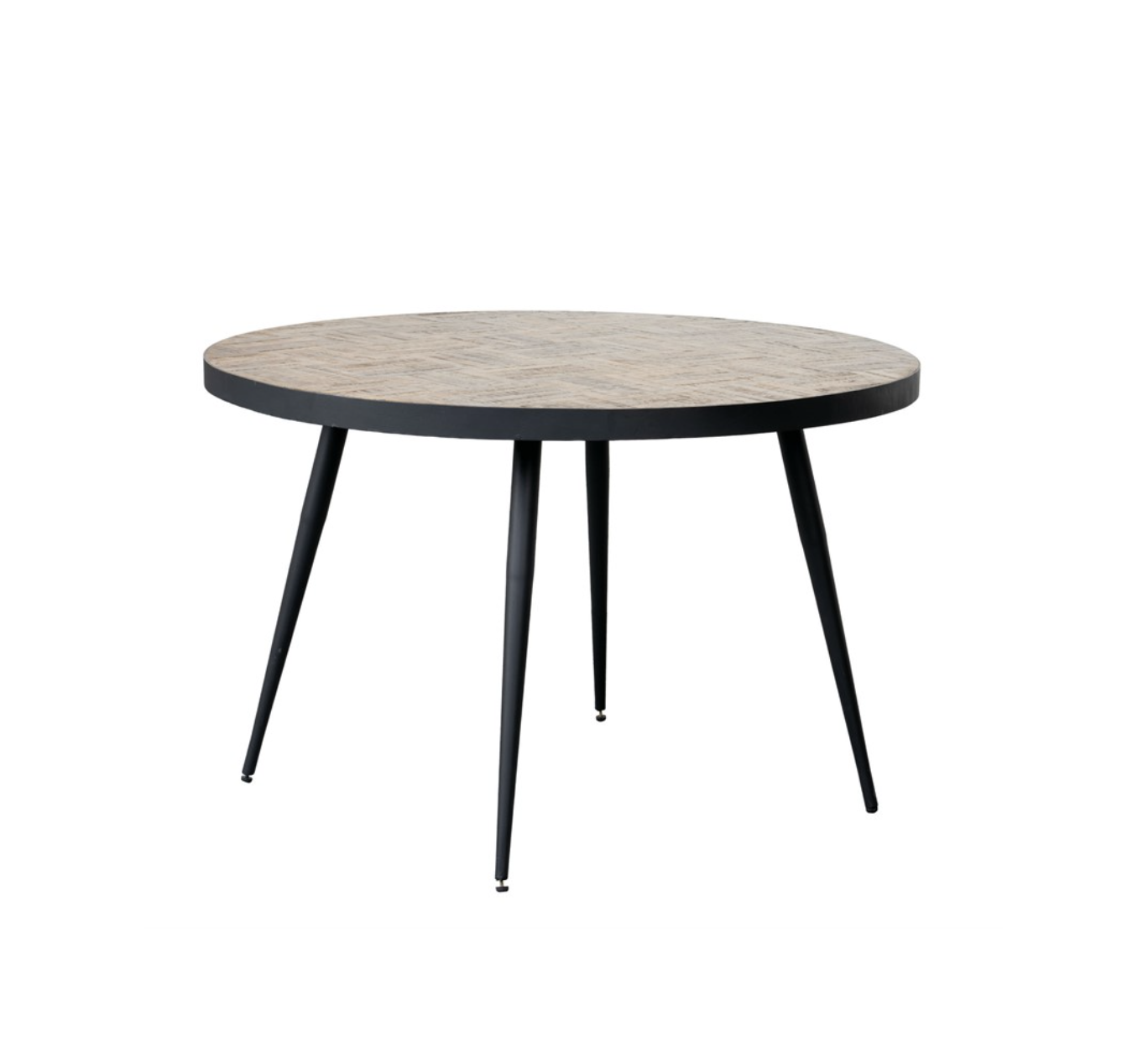 Spisebordet Lexington, lett og stilrent spisebord der bordplate er i resirkulert teak og ramme i metall, støttes av slanke ben i metall.