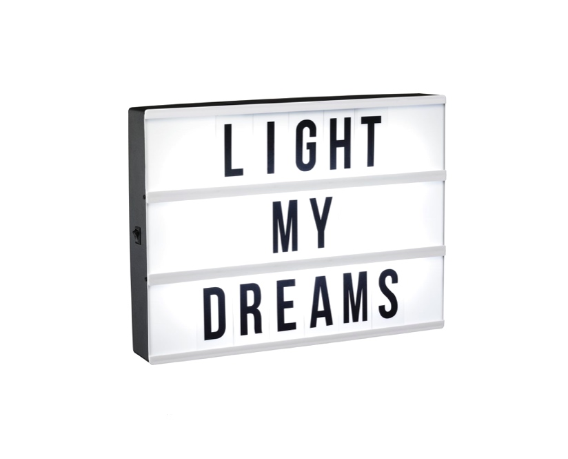 Lightbox i 3 forskjellige størrelser. Følger med 90 bokstaver, tall og symboler, inkludert Æ Ø Å.