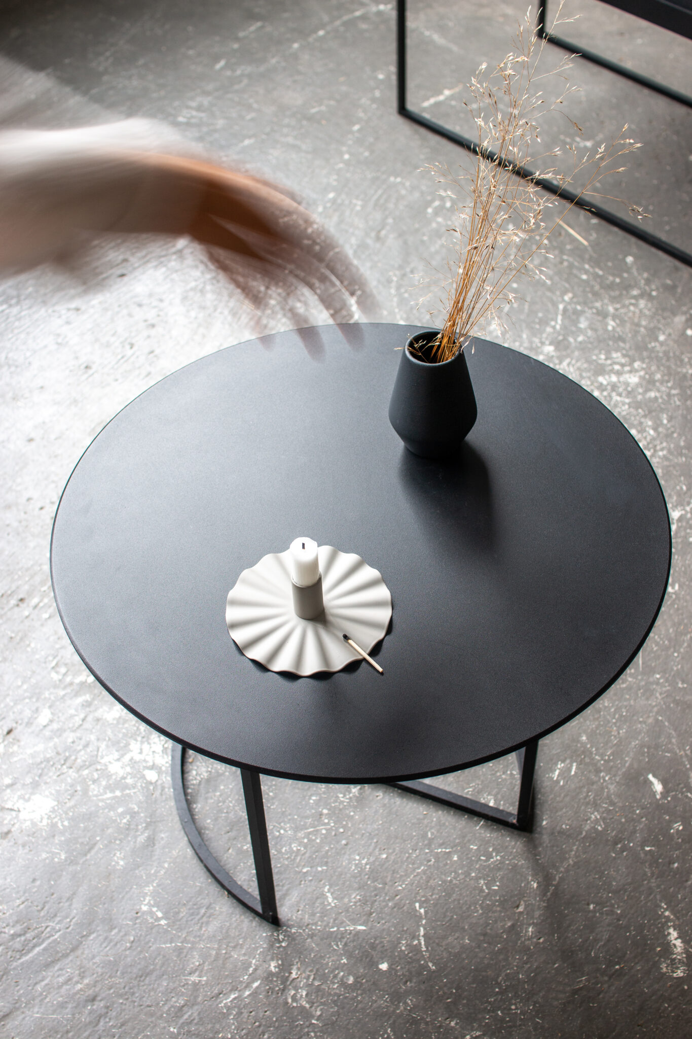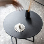 På salongbordet i Ljå møtes linjer og former fra en tid da høstingen ble gjort for hånd. Bordets ramme, som navnet antyder, er inspirert av formen på en ljå. En slank ramme i sort pulverlakkert stål bærer en delikat, rund bordplate i matchende svart stål, eller massiv eik i forskjellige utførelser.