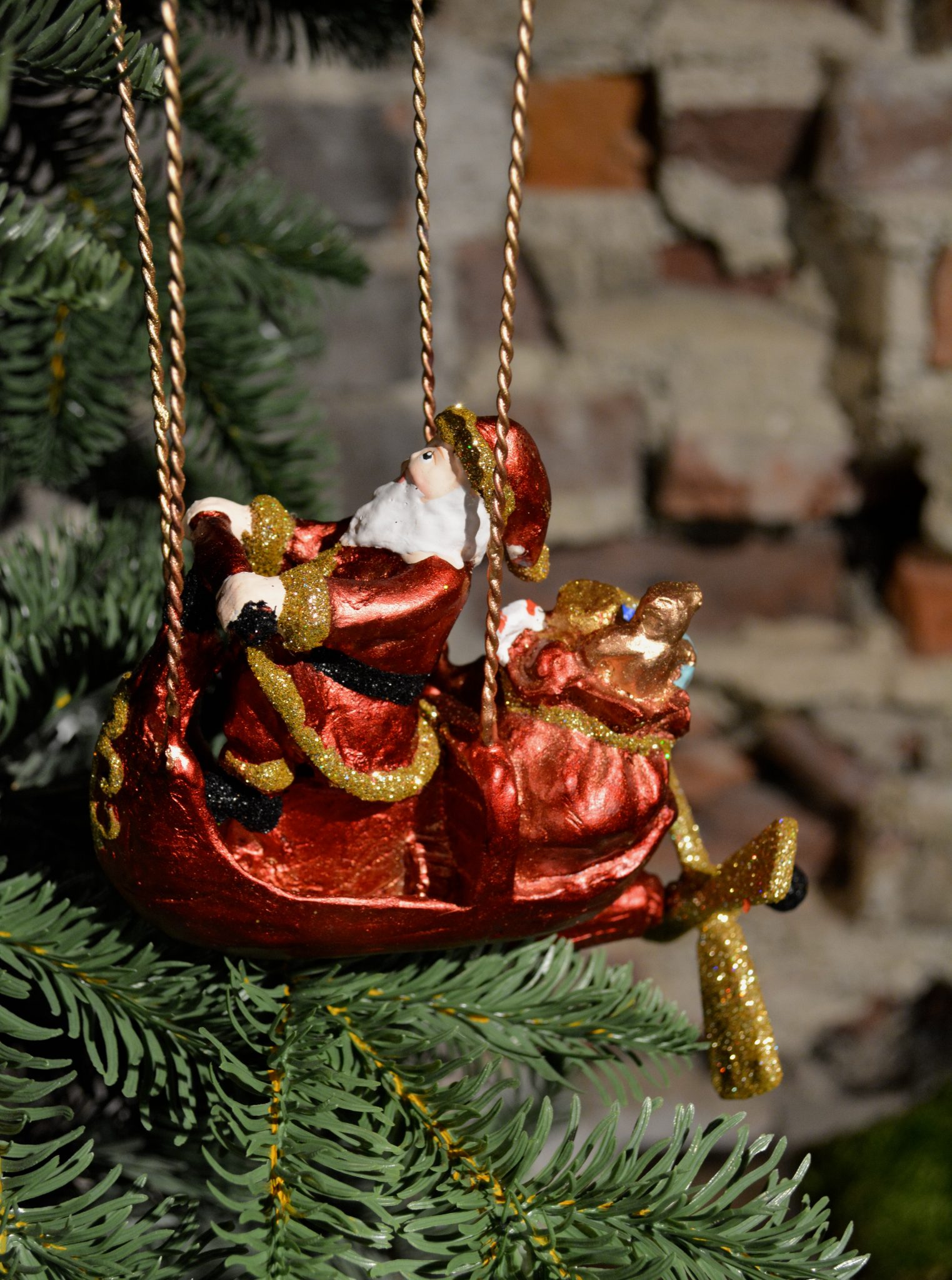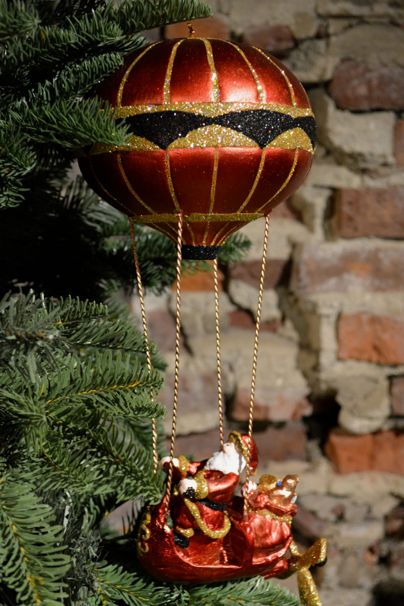 Luftballong med flyvende julenissen, roterende propell. Dekorativ til å henge i en vindu, eller på juletreet.
