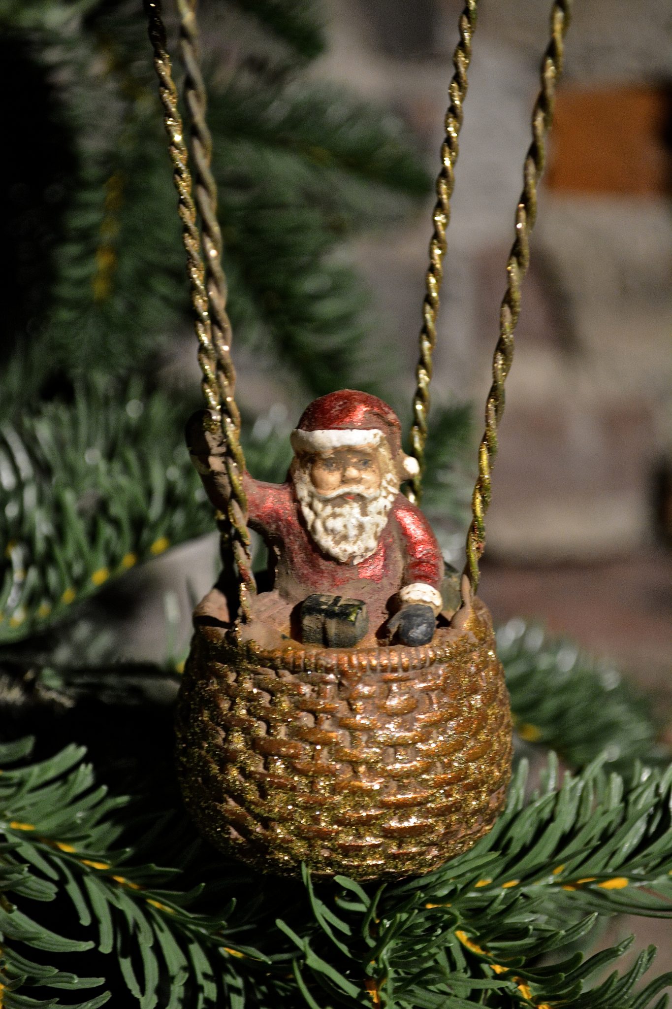 Luftballong med julenissen. Dekorativ til å henge i en vindu, eller på juletreet.