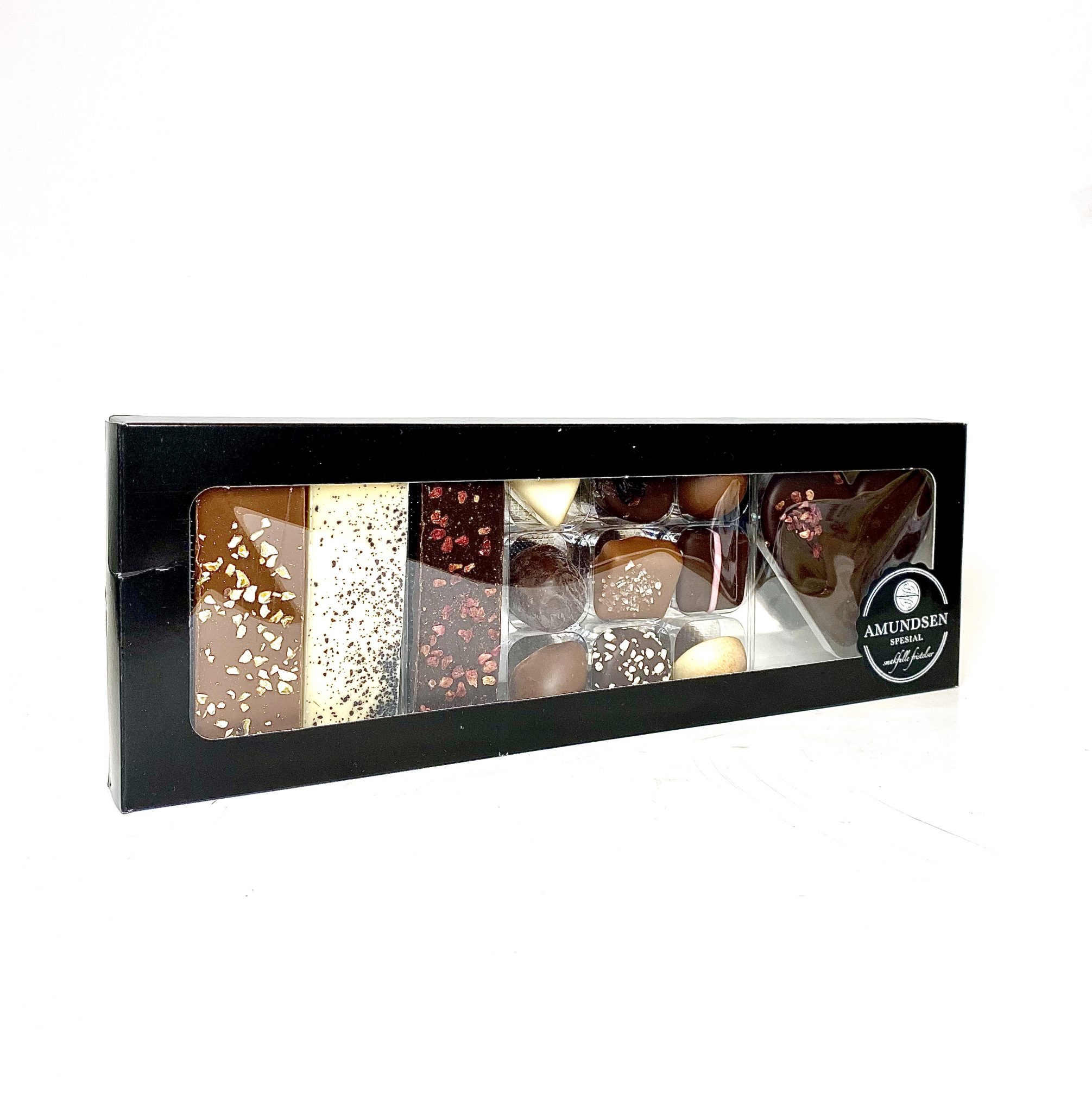 Den perfekte gaven til den som elsker sjokolade. Gave eske med konfekt, sjokolade stenger og marsipan.