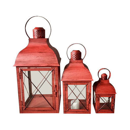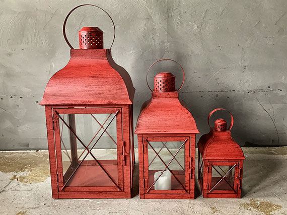 Dekorative lykter i vintage rød, kommer i tre forskjellige størrelser.