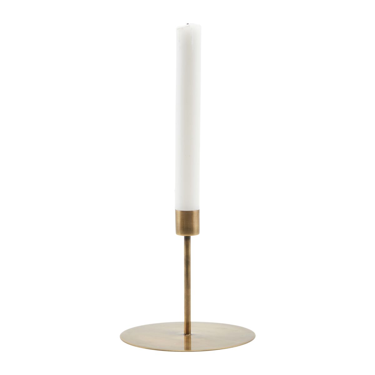 Dekorativ og stilren lysestake i forgyllet metall.