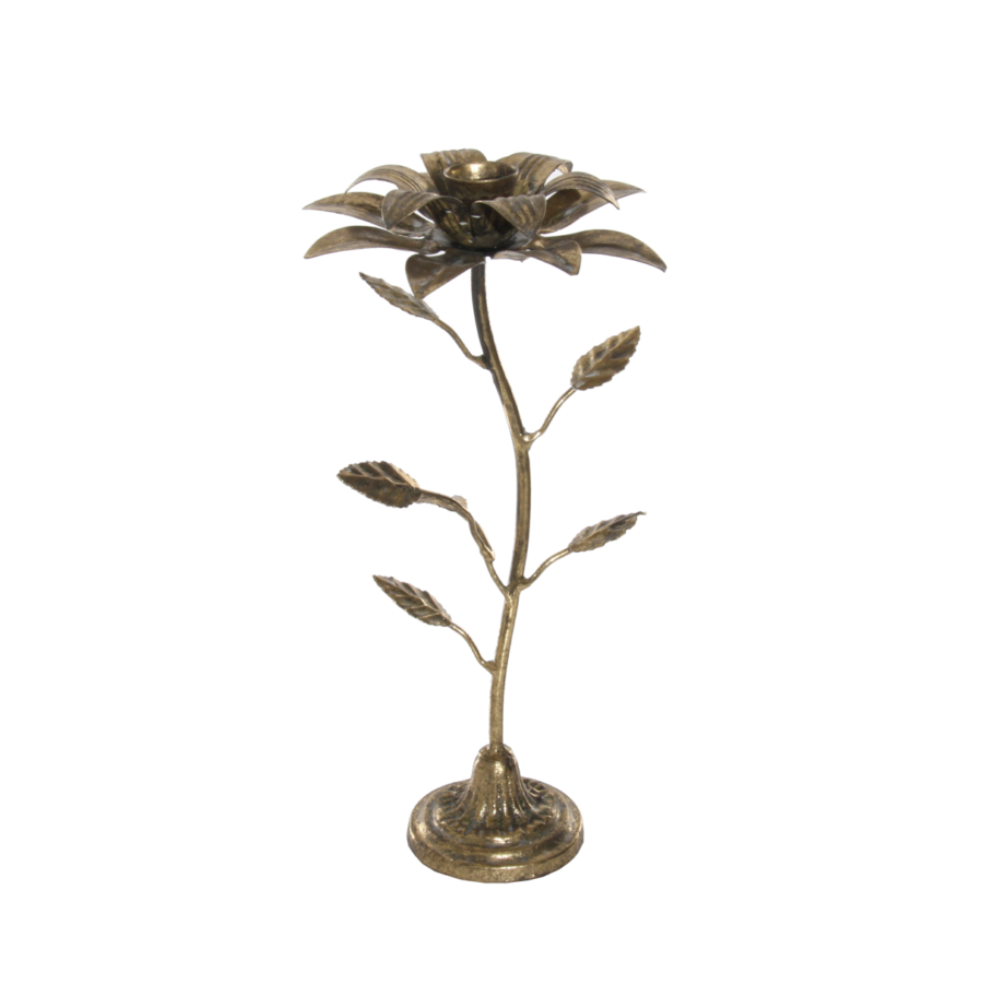 Metal flower lysestaken er en elegant og stilig lysestake i forgyllet metall til kronelys. Sett flere forskjellige lysestaker sammen for å lage en bukett av de forskjellige lysestakene i serien.