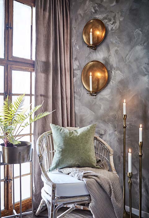Dekorativt og røff veggdekor i en antikk messing finish. Du kan skifte mellom både kronelys og kubbelys. Velg mellom 2 forskjellige størrelser.
