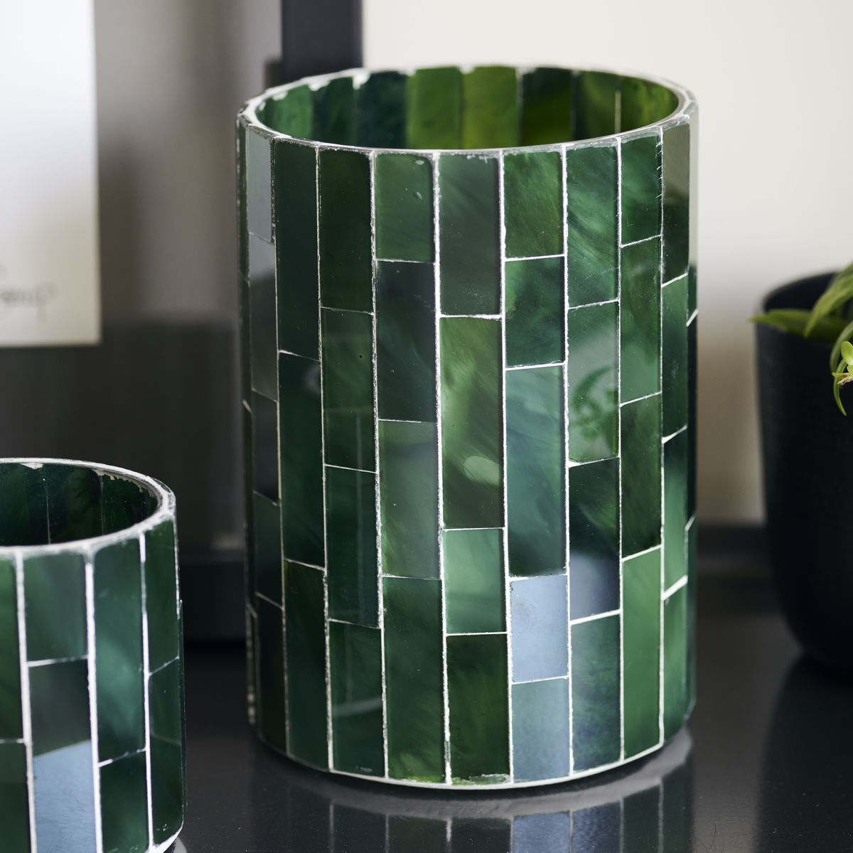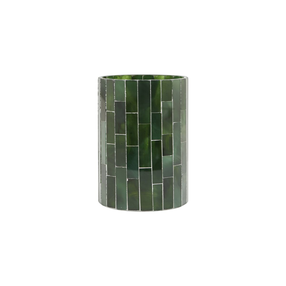 Den lille telysholderen i grønn mosaikk er et vidunderlig tillegg til interiøret ditt. Mosaikk er en kunstform som har eksistert i flere tusen år. Likevel er designet like relevant da som nå. Denne mørkegrønne versjonen av Amroha fra House Doctor varierer i farge og tilfører et stemningsfullt, skimrende lys i hjemmet ditt. Med Amroha kan du lage et unikt stilleben ved å eksperimentere med ulike overflater og materialer. Et vakkert alternativ er å plassere flere små og høye Amroha-telysholdere sammen. Obs: Finishen på dette produktet kan variere.