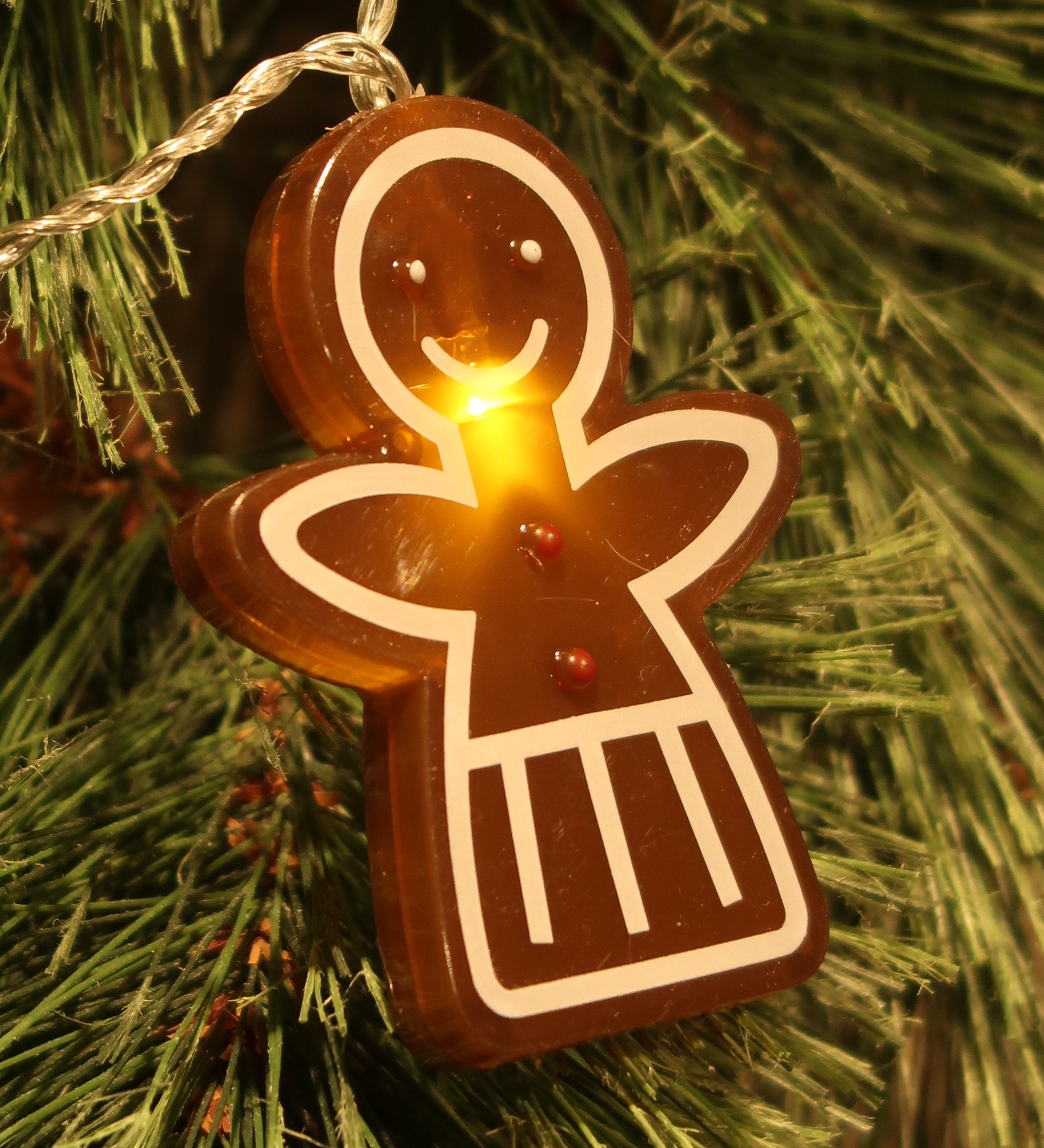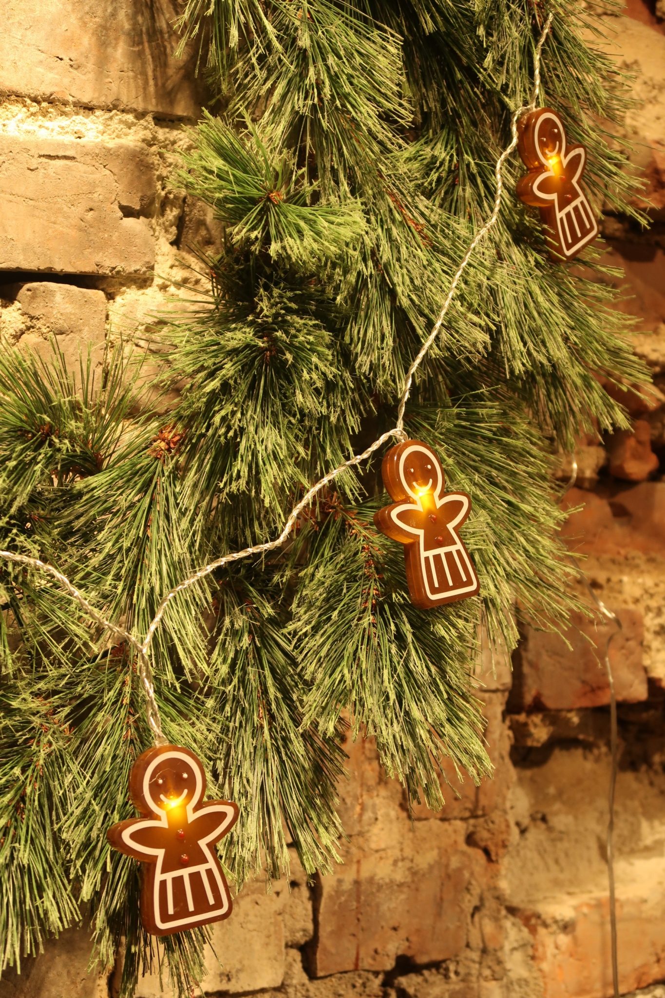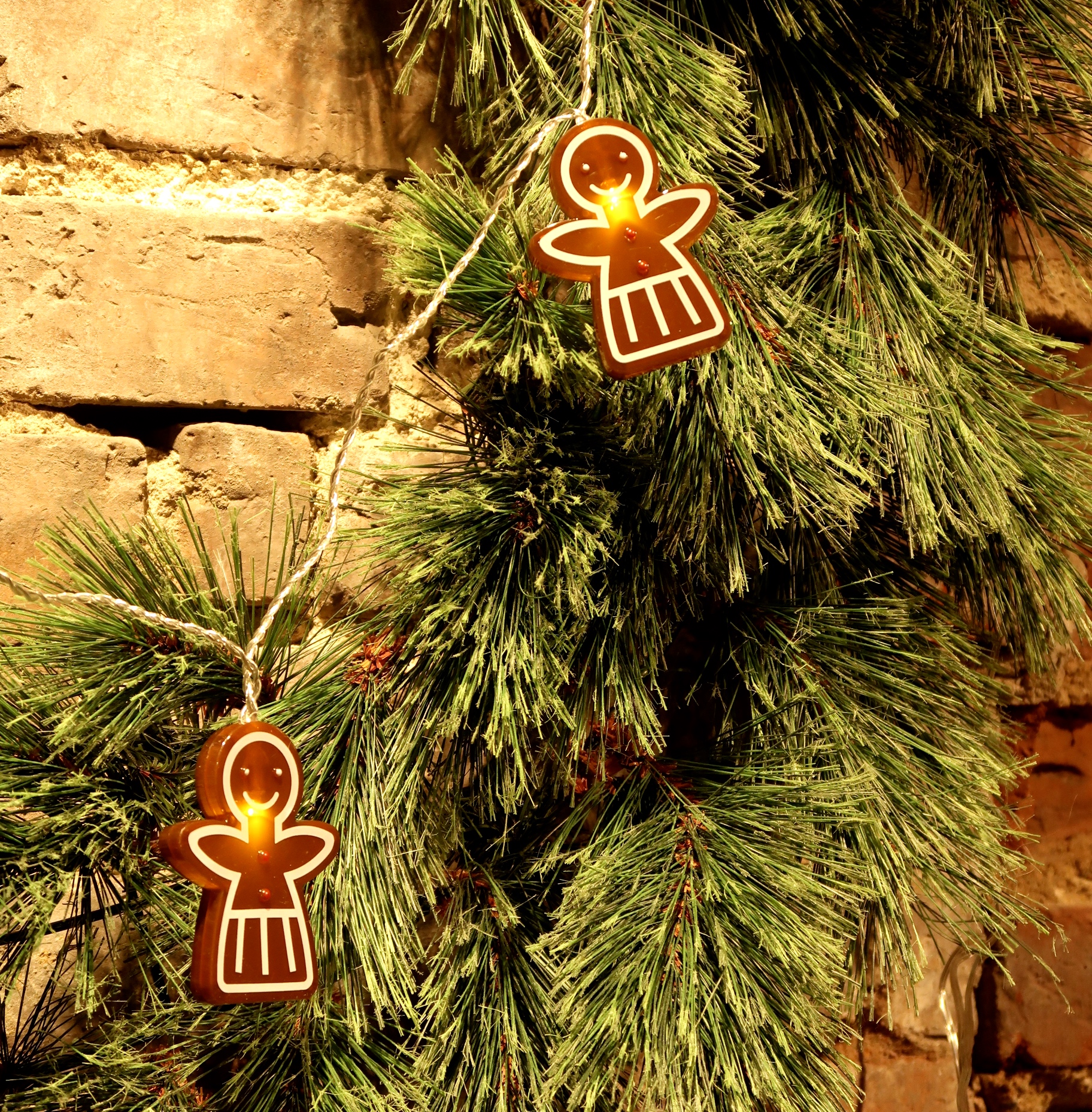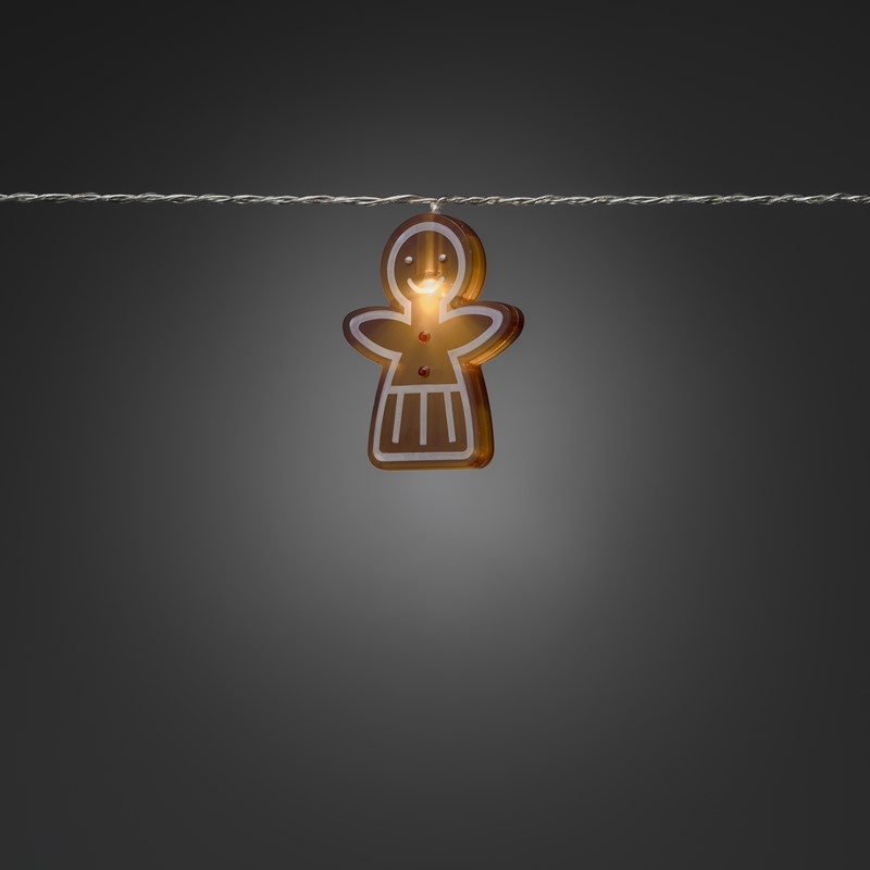 Dekorativ lysslynger med 8 pepperkakedamer, varmhvite LED lys.