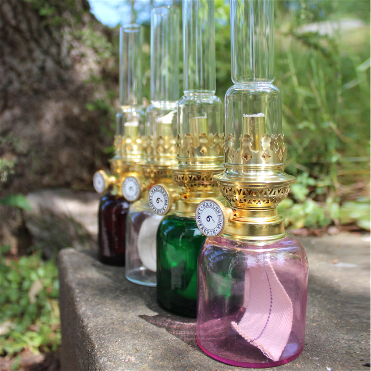 En vakker oljelampe som hever kosen et hakk. Koholmen har et oljehus i munnblåst glass, og lysstyrken i rundbrenneren tilsvarer omtrent lysstyrken til seks stearinlys. Vi liker konstrastene mellom glass og metall som bare blir vakrere når lampen tennes.