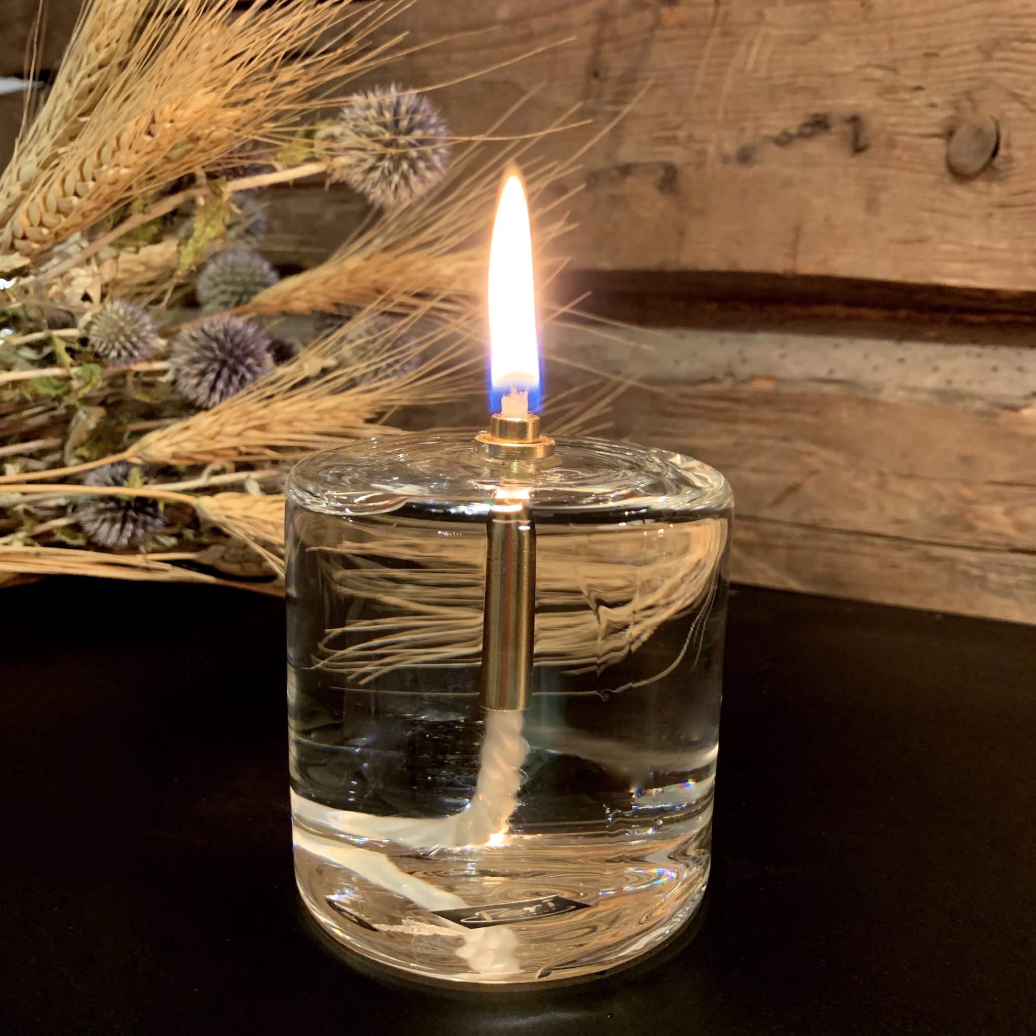 En vakker oljelampe i glass som hever kosen et hakk. Oljelampen er evig varende, det er kun å fylle på lampeolje og bytte veke etter behov.