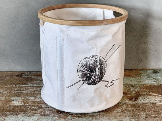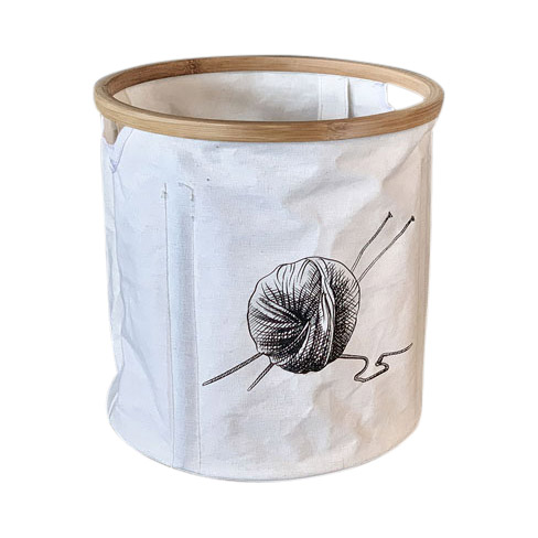 Dekorativ og praktisk kurv. Plastbelagt innside så enkelt å holde ren, når den ikke er i bruk kan den enkelt slås sammen.