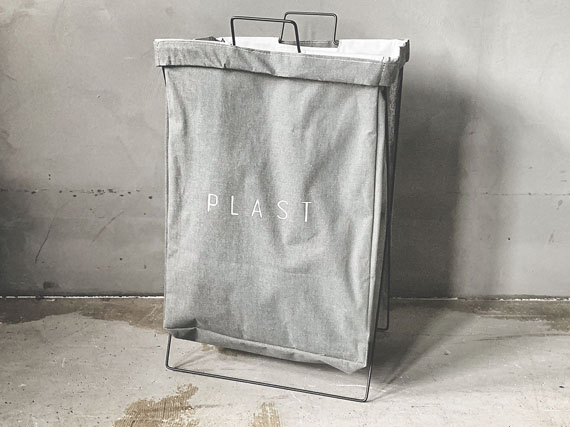 Dekorativ og praktisk kurv til plast. Plastbelagt innside så enkelt å holde ren, når den ikke er i bruk kan den enkelt slås sammen.