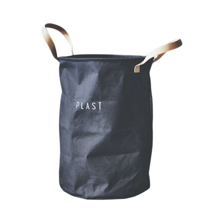 Dekorativ og praktisk kurv til plast. Plastbelagt innside så enkelt å holde ren, når den ikke er i bruk kan den enkelt slås sammen.