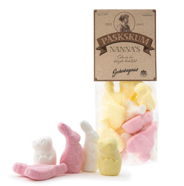 Nydelig mykt skum med fruktsmak, i form av høner, kyllinger og haner.