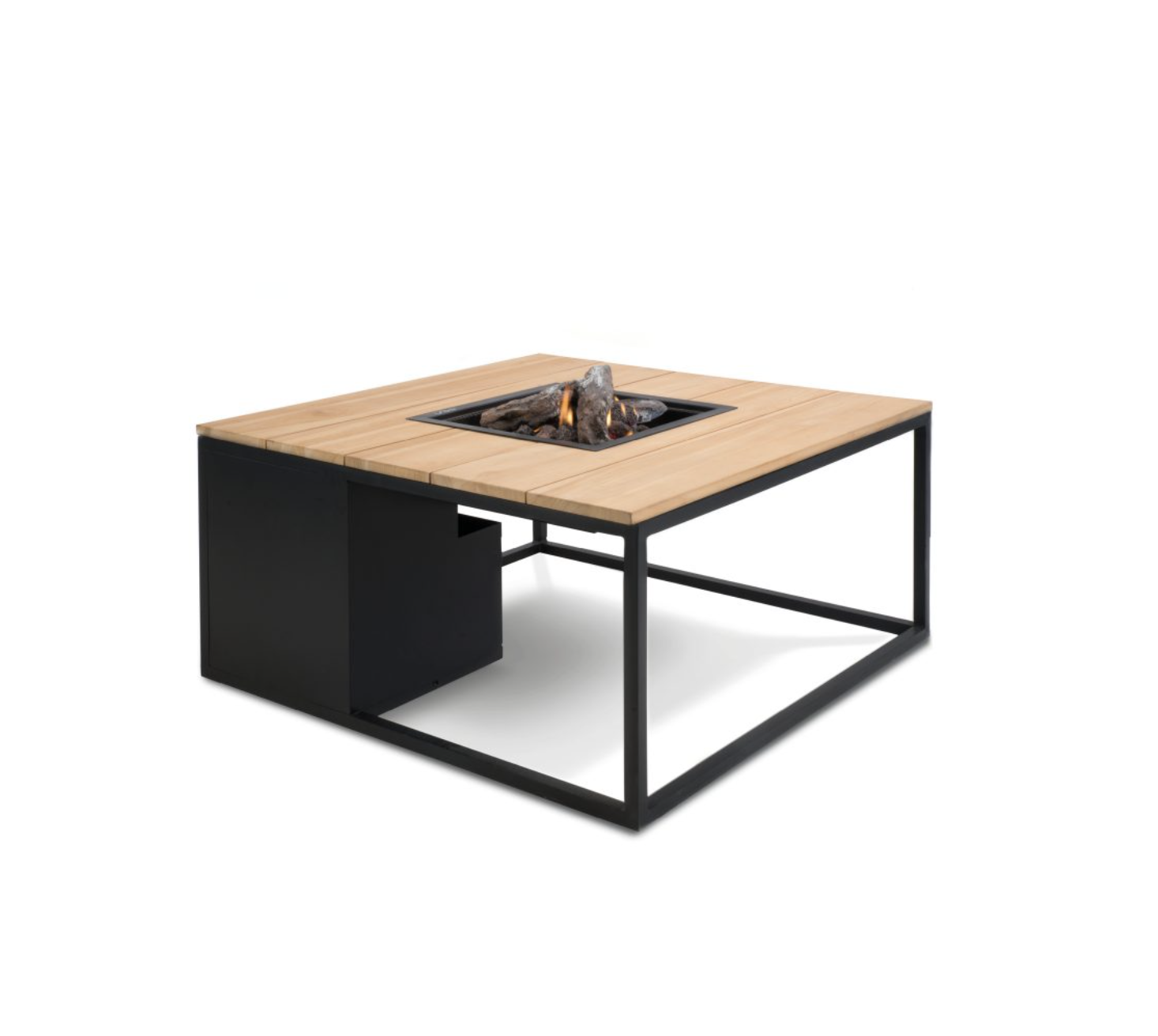 Skap god stemning med dette peisbordet, som er gassdrevet. Plass til en 5 kg gassflaske skjult i et skap under bordet. Det medfølger også lavastener, og kubber for å skape en ekstra hyggelig atmosfære.