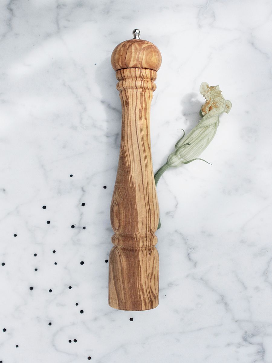 Olivenved har ikke bare en fin struktur. Det er også en tresort med stor holdbarhet og antibakterielle egenskaper, noe som gjør det egnet til mat. Denne håndlagde pepperkvernen med keramisk kvern er helt unik da ingen to trestykker er like. Treverket føles litt grovt til å begynne med, men blir helt glatt når det brukes.