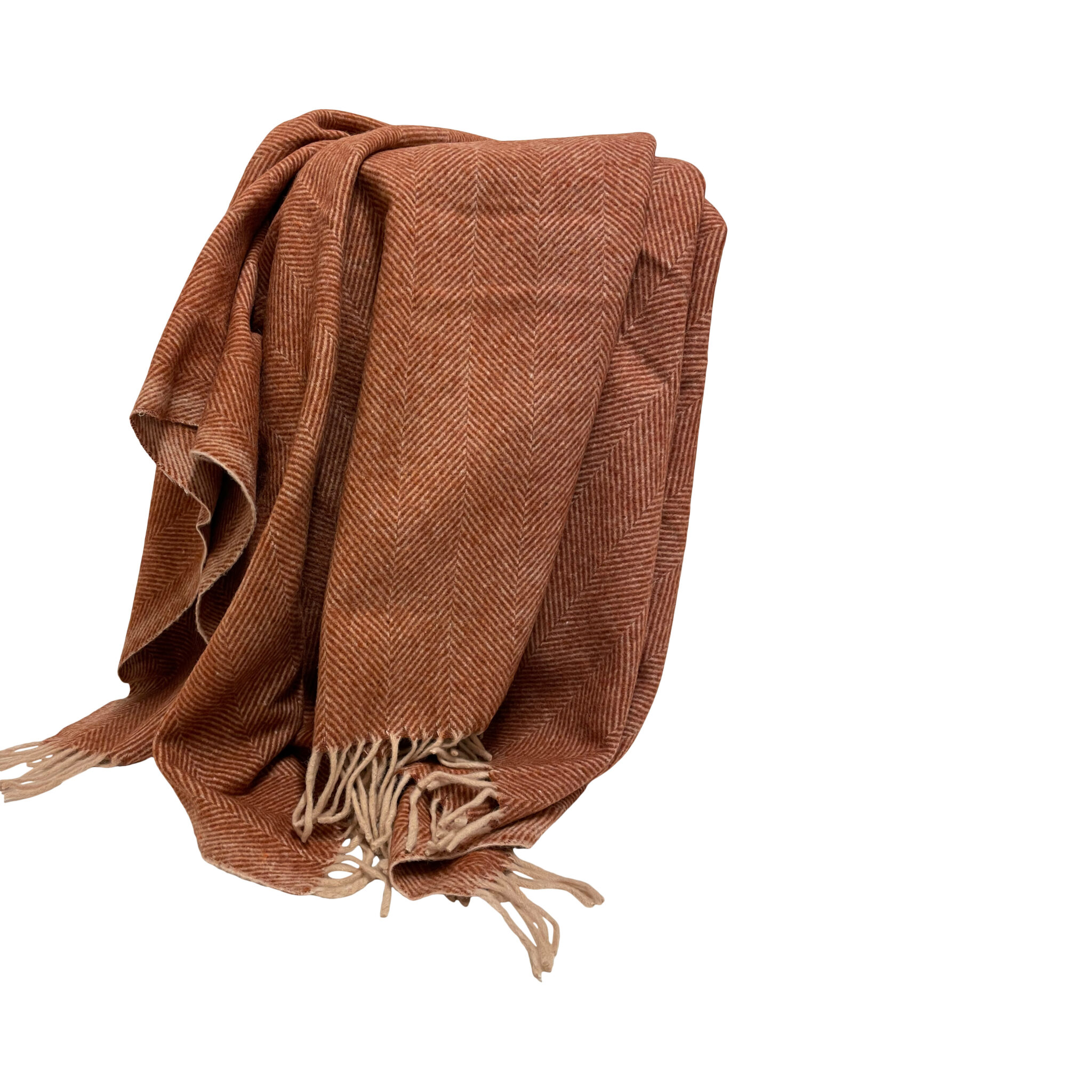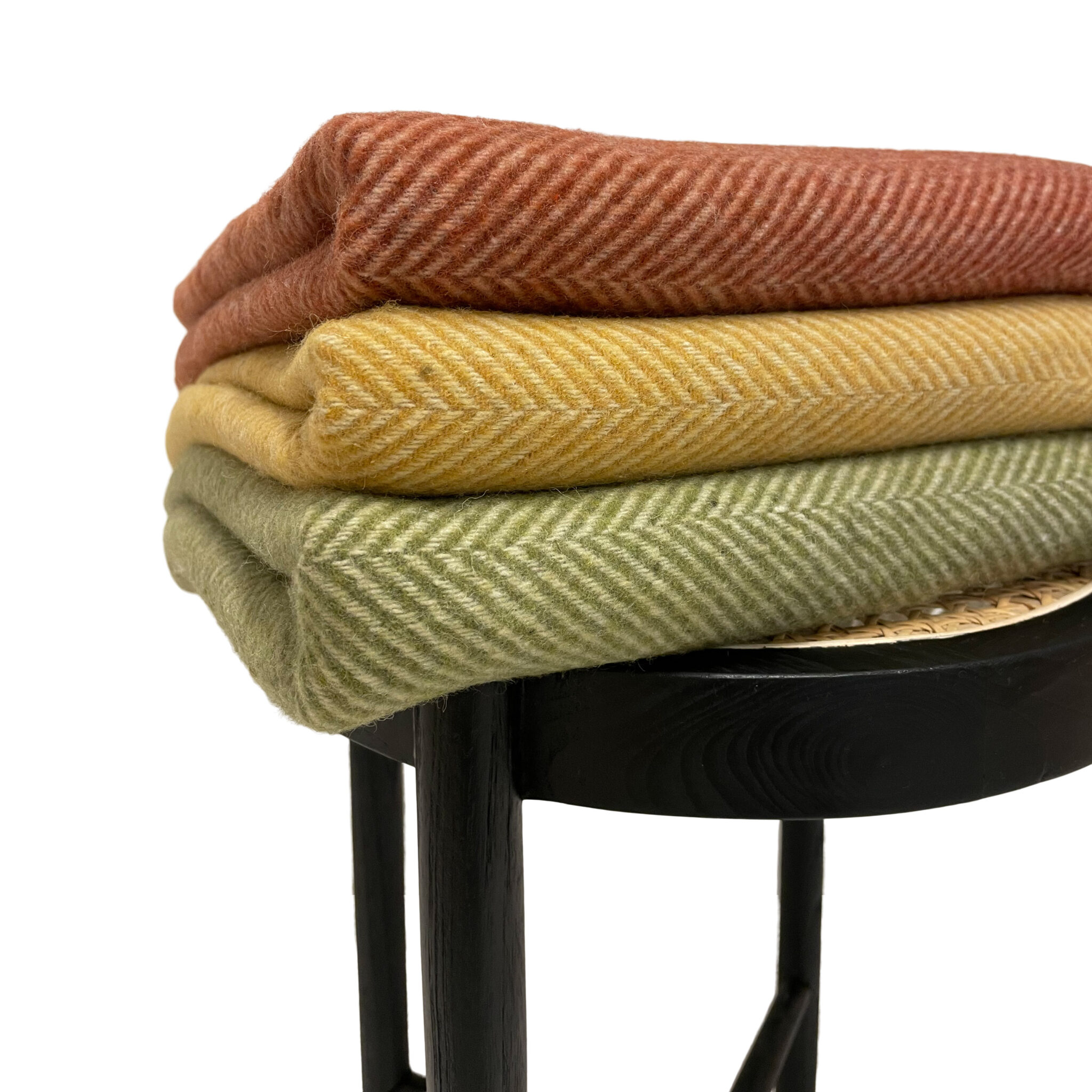 Dette pleddet er laget av resirkulert ull blandet med deponi for et slitesterkt og mykt garn. Det bærekraftige teppet er laget i en tett twill-veving og børstet for en fin tekstur. Denne kombinasjonen gjør at du kan vaske pleddet i maskin!