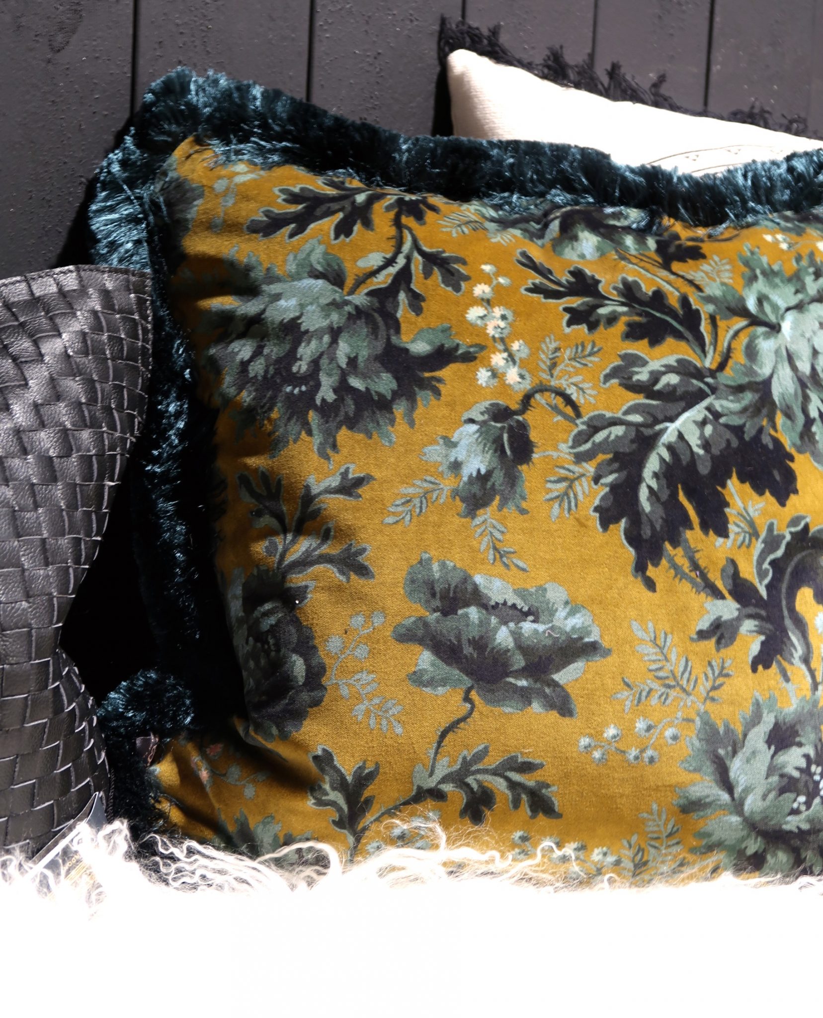 Fantastisk flott pute i velur med frynser fra det engelske merket House of Hackney.