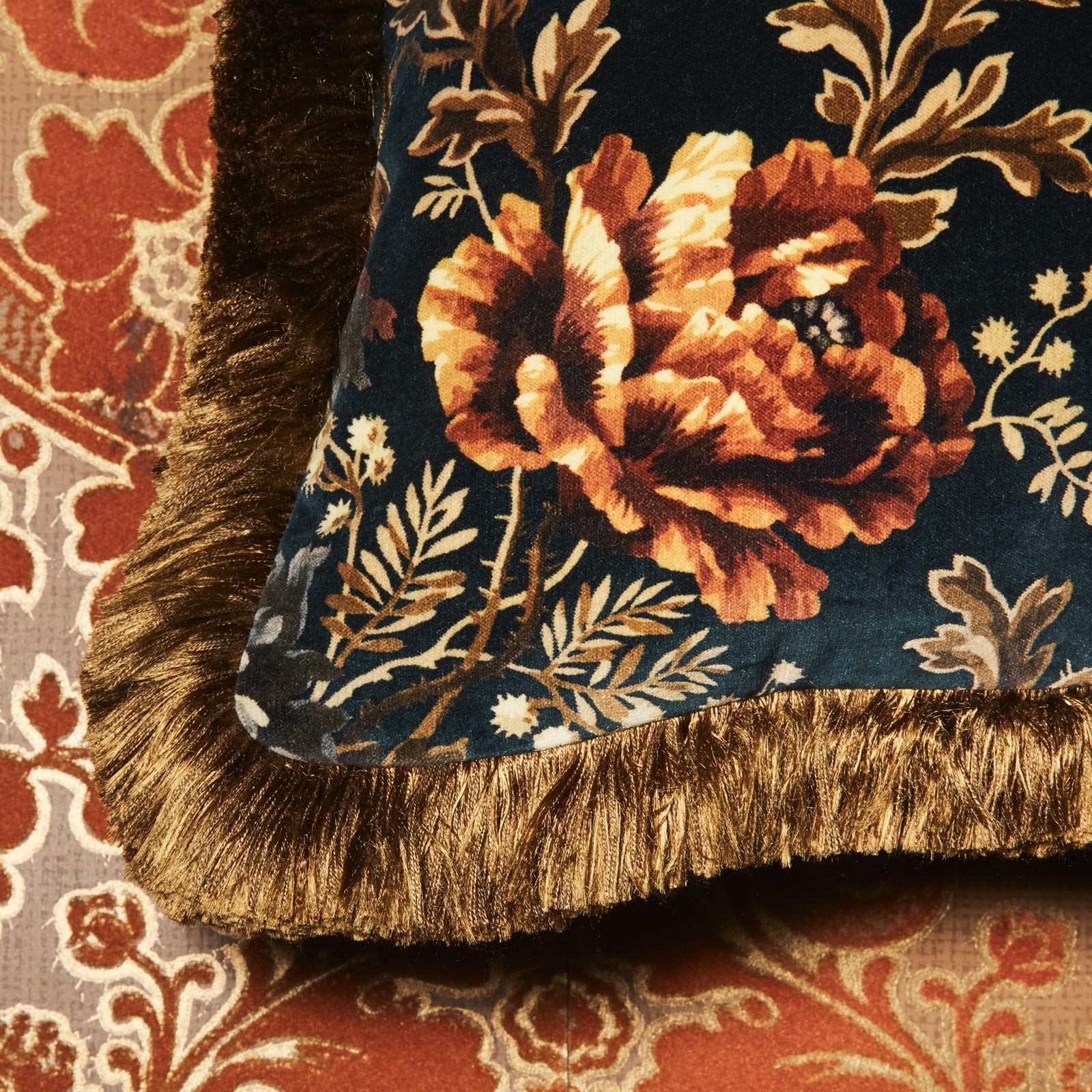 Fantastisk flott pute i velur med frynser fra det engelske merket House of Hackney.
