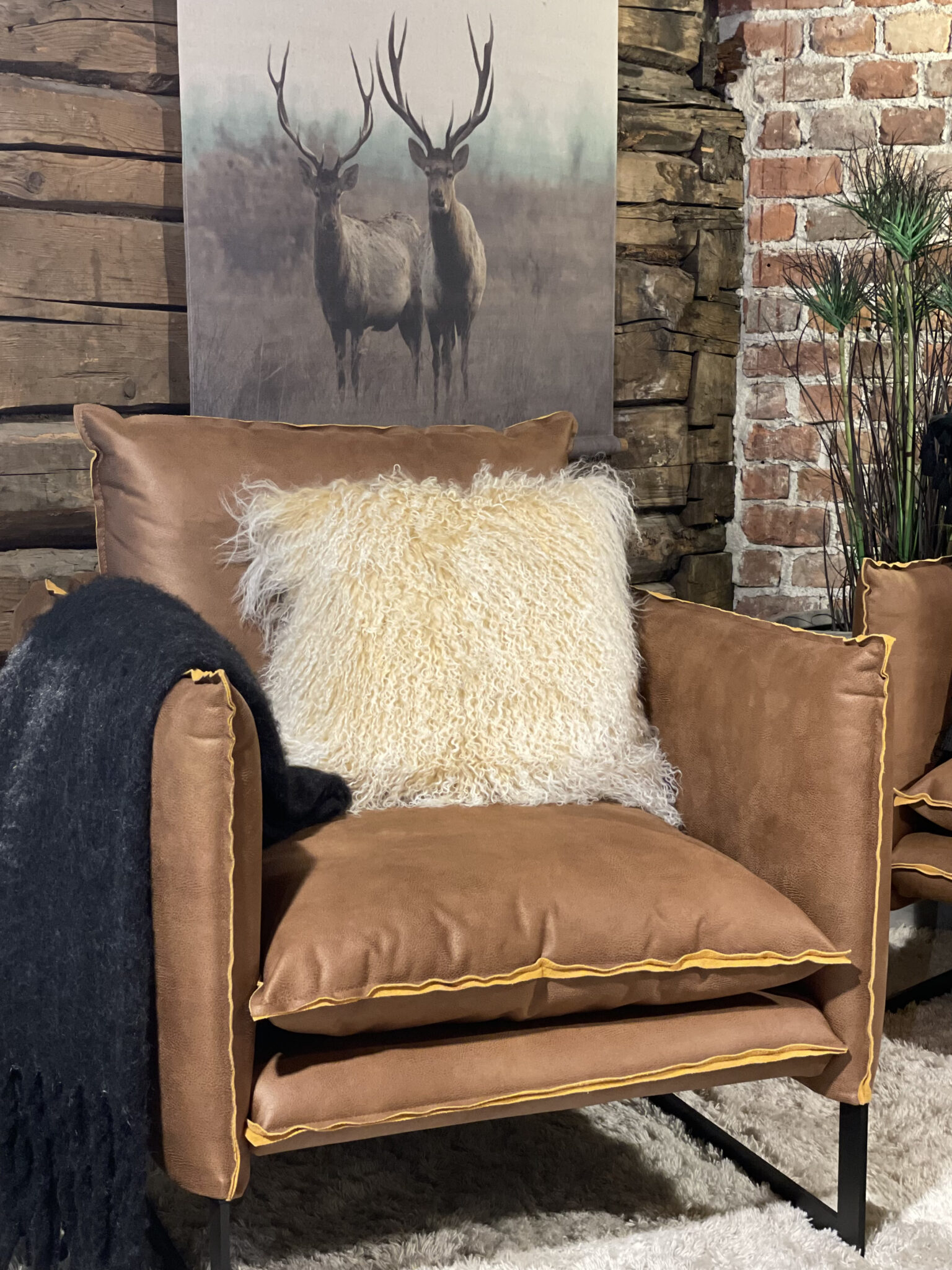 Denne puten er laget av tibetansk lammeskinn, som er preget av de silkemyke krøllene i pelsen som gir det ypperste innen komfort.