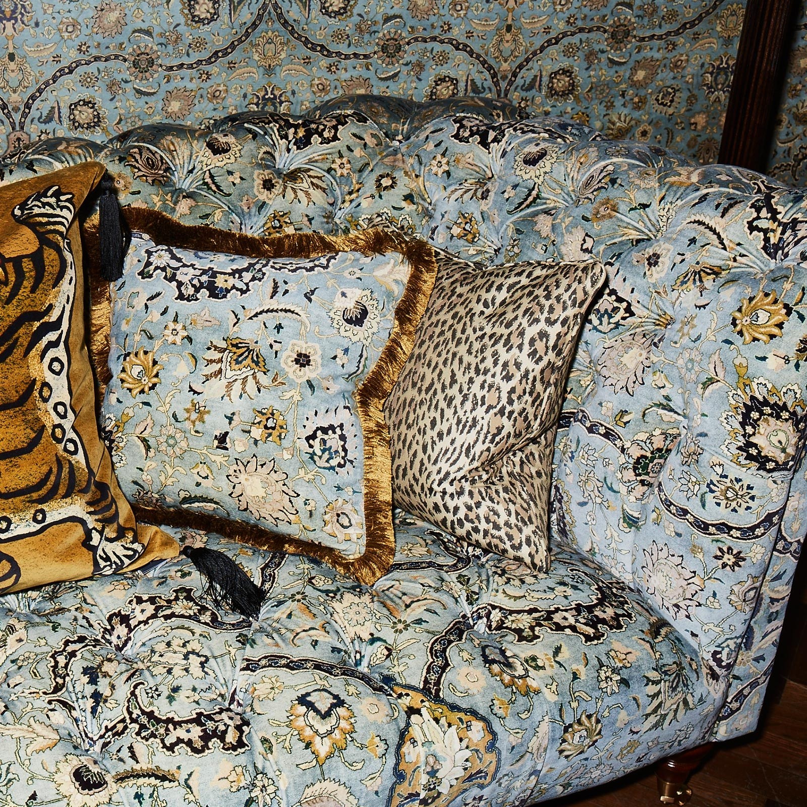 Fantastisk flott pute i velur med frynser fra det engelske merket House of Hackney.