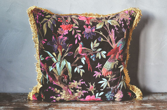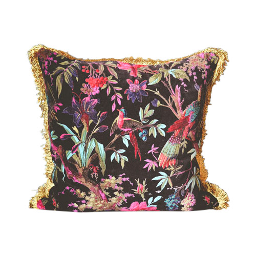 Putetrekk, «botanisk» i velur, med frynser. Dette putetrekket blir håndlaget, så mønster kan fravike fra produktbilde.