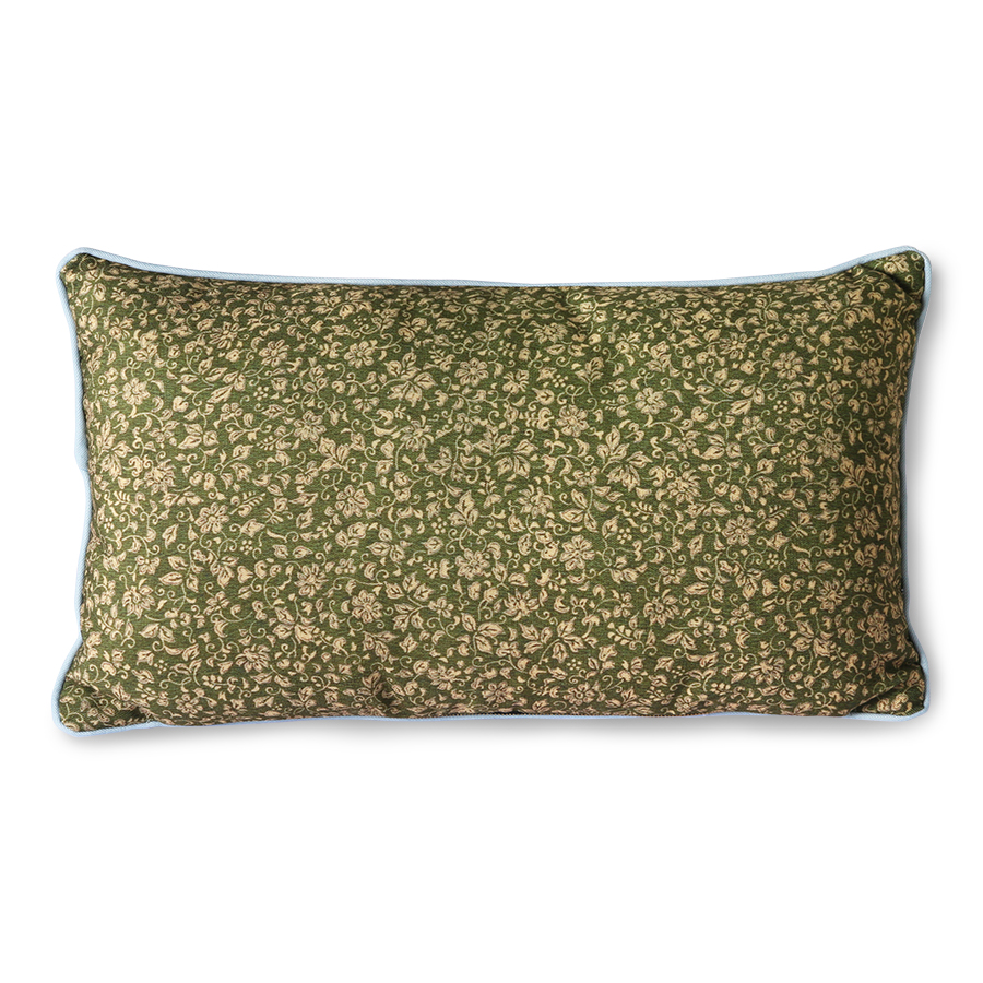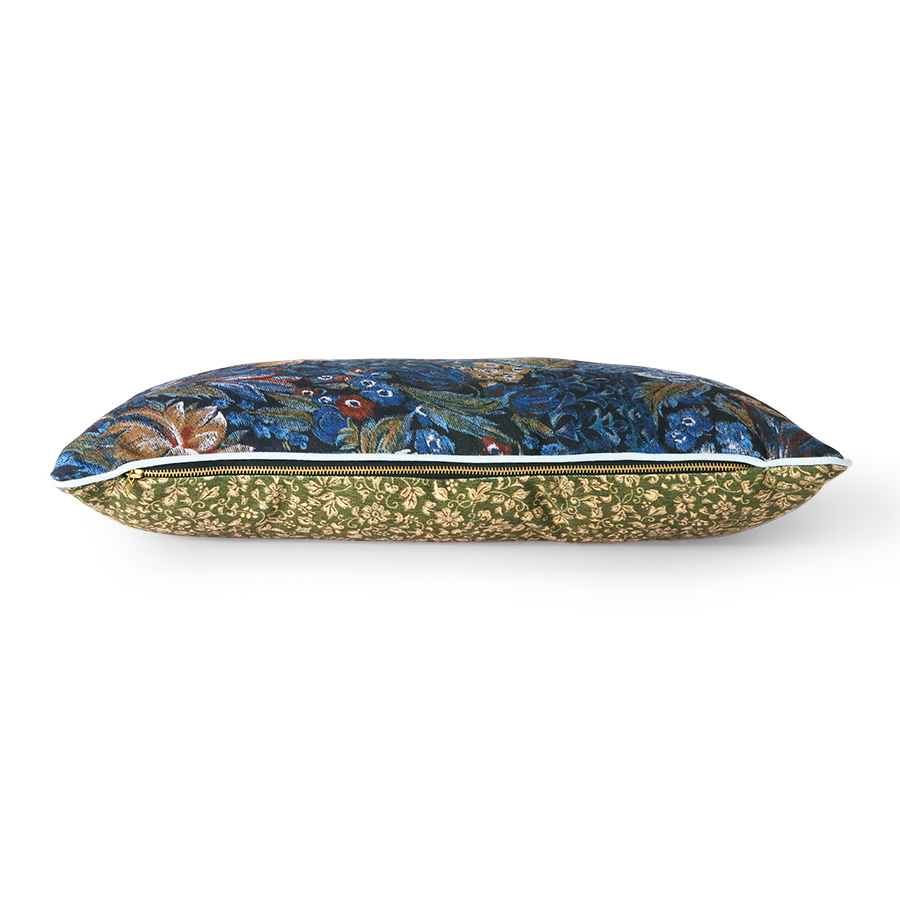 Putetrekk «Doris» Med blått print på den ene siden og grønt print på den andre, med glidelås i messing.