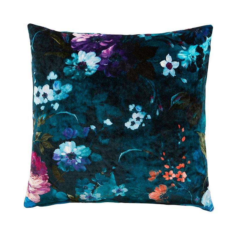 Eksklusivt putetrekk i viskose og bomull, med blomstermønster.
